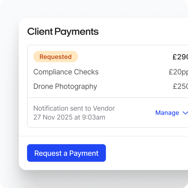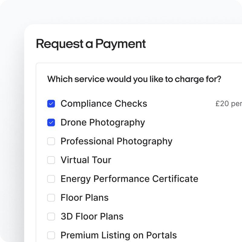 Agents can request payment for any service, such as AML checks, EPCs, professional photography or enhanced marketing packages, directly within their workflow.