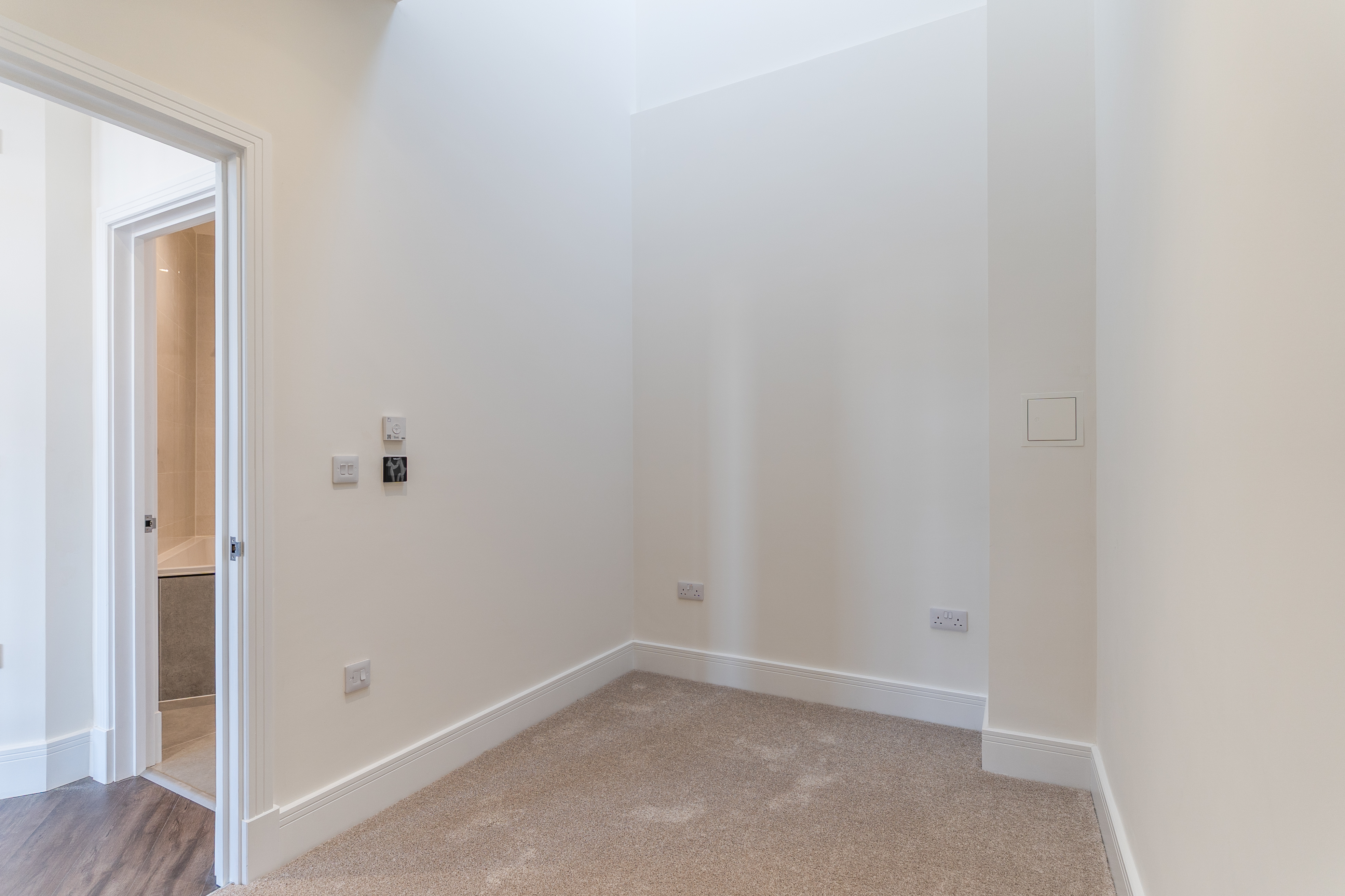 Externally, the development offers secure entry with a video intercom system, and while there is no private outdoor space, residents benefit from the close proximity to nearby parks and city amenities. Additional features of the apartment include underfloor heating throughout, LVT flooring, carpeted bedrooms, smoke alarms and a sprinkler system, ensuring comfort, style and safety throughout.