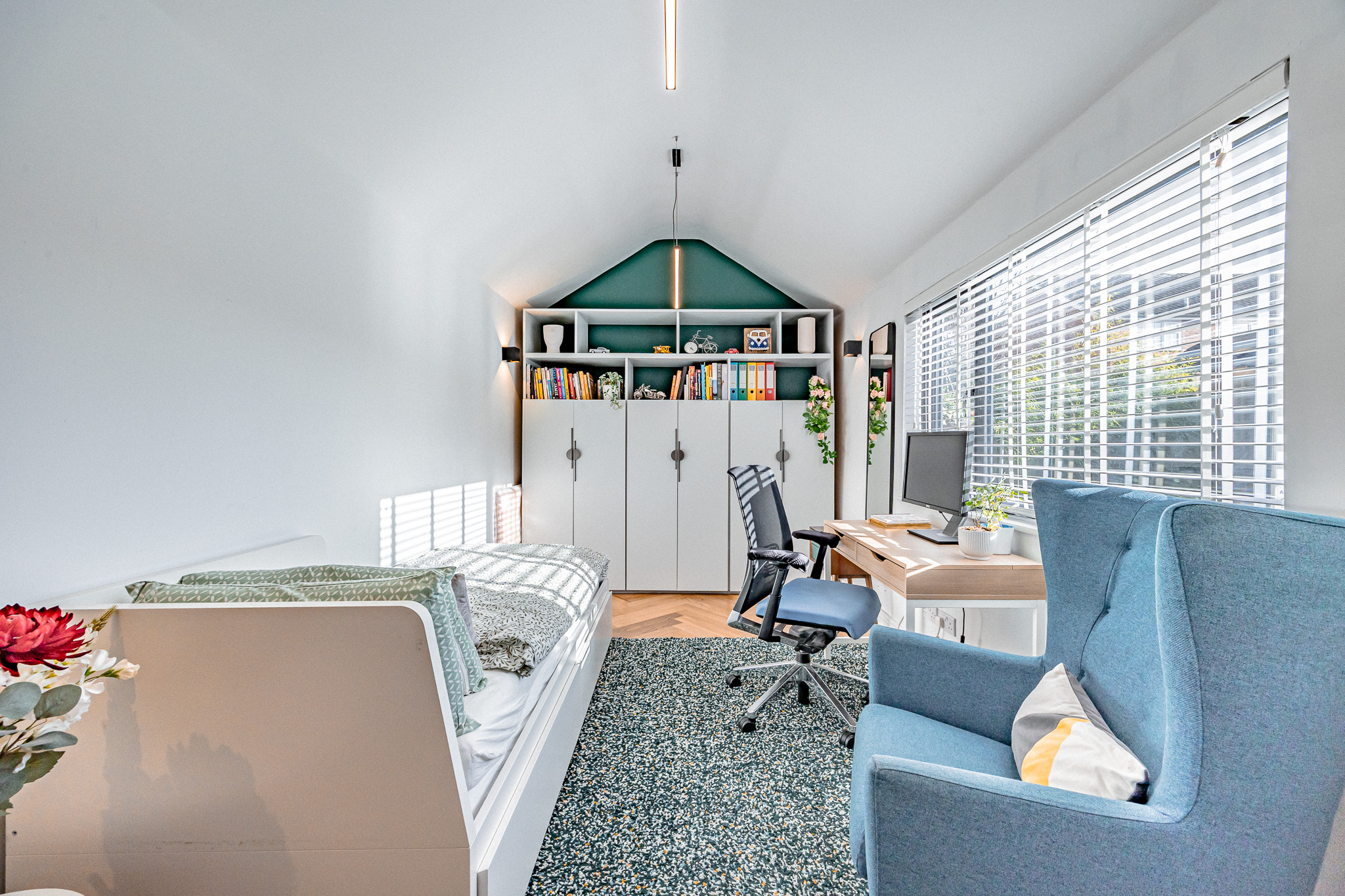 - Downstairs versatile bedroom/reception room with fitted storage and garden views, ideal as guest room or office