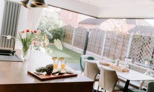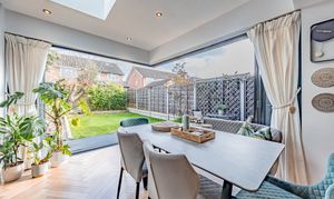 Large patio doors to the garden: The fully opening corner doors are a favourite feature, effortlessly blending indoor and outdoor living and making it easy to enjoy the south-facing garden, especially in the warmer months.