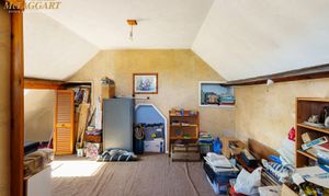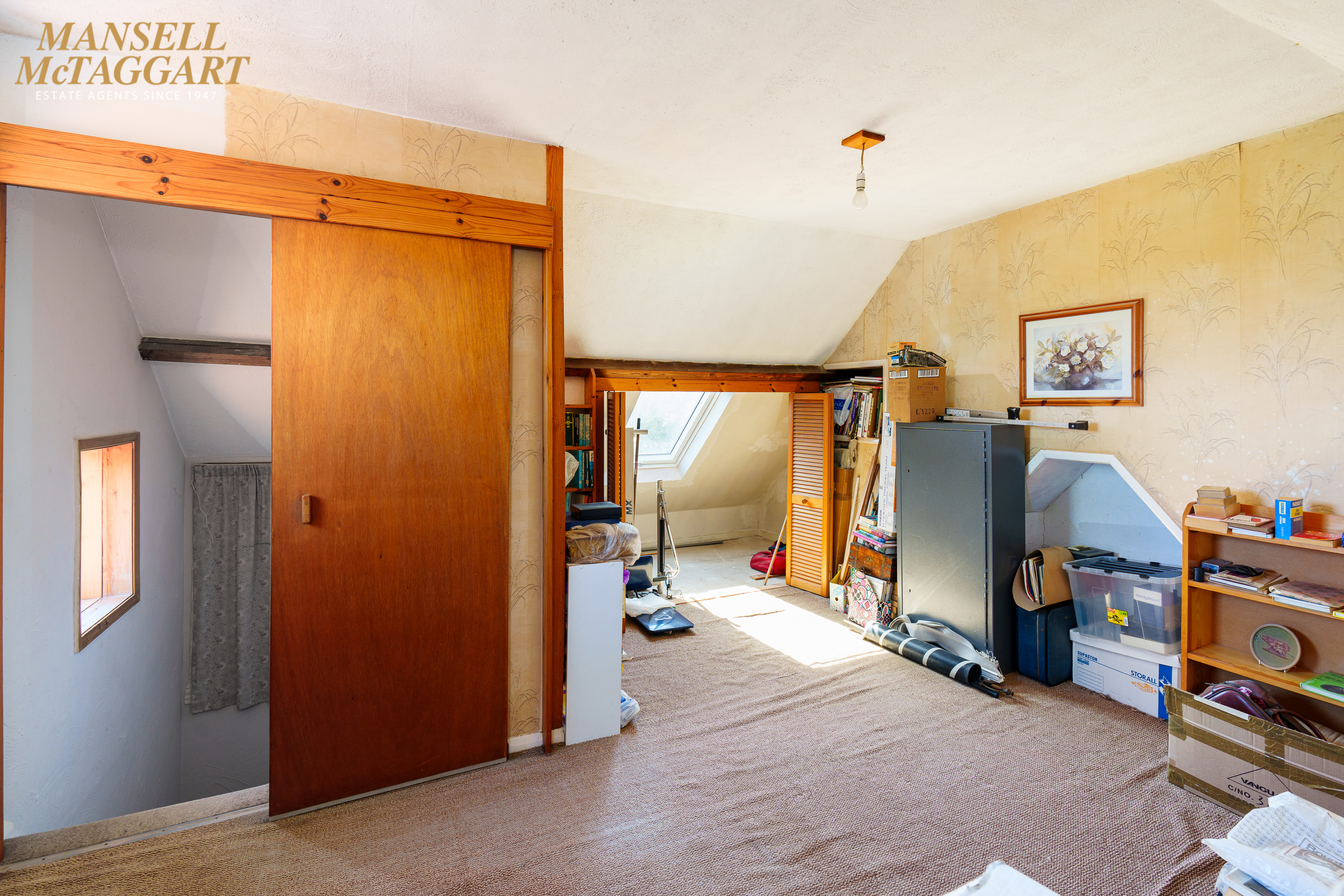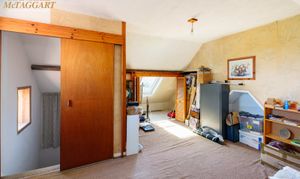 Attic Room/Occasional Bedroom Four: double aspect with uPVC double glazed window to side and double glazed ‘Velux’ to front, night storage heating, cupboards and storage.