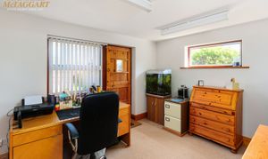 Workshop: shelving and storage, double glazed window to rear. Scope for cloakroom/WC.