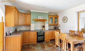 Kitchen/Dining Room: composite fitted eye & base shaker style, granite effect worktops, tiled floor and splashbacks, enamel sink unit, integrated fridge, integrated dishwasher, space for electric cooker with concealed fitted oven, under unit lightning, double glazed window and panel glazed door to:-