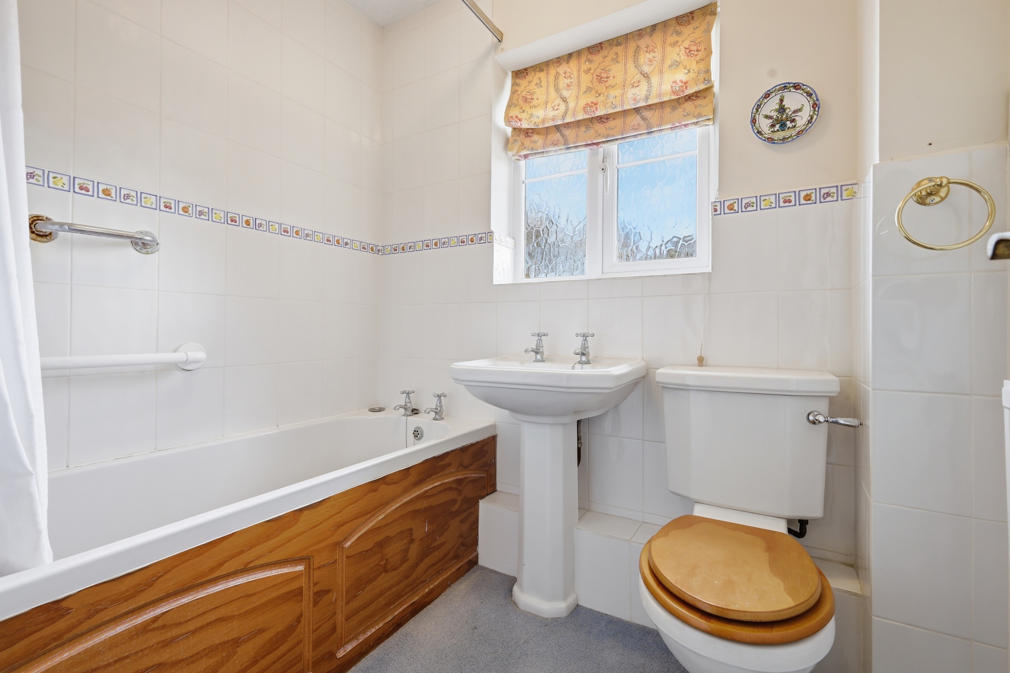Fitted three piece suite. Electric shower over bath.