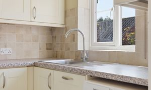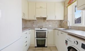 Fitted to three walls with a range of eye and base level units. Space for free standing white goods. Window to rear aspect.