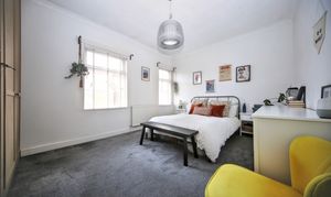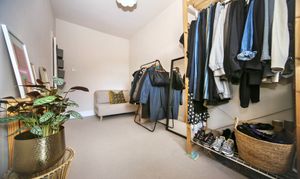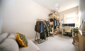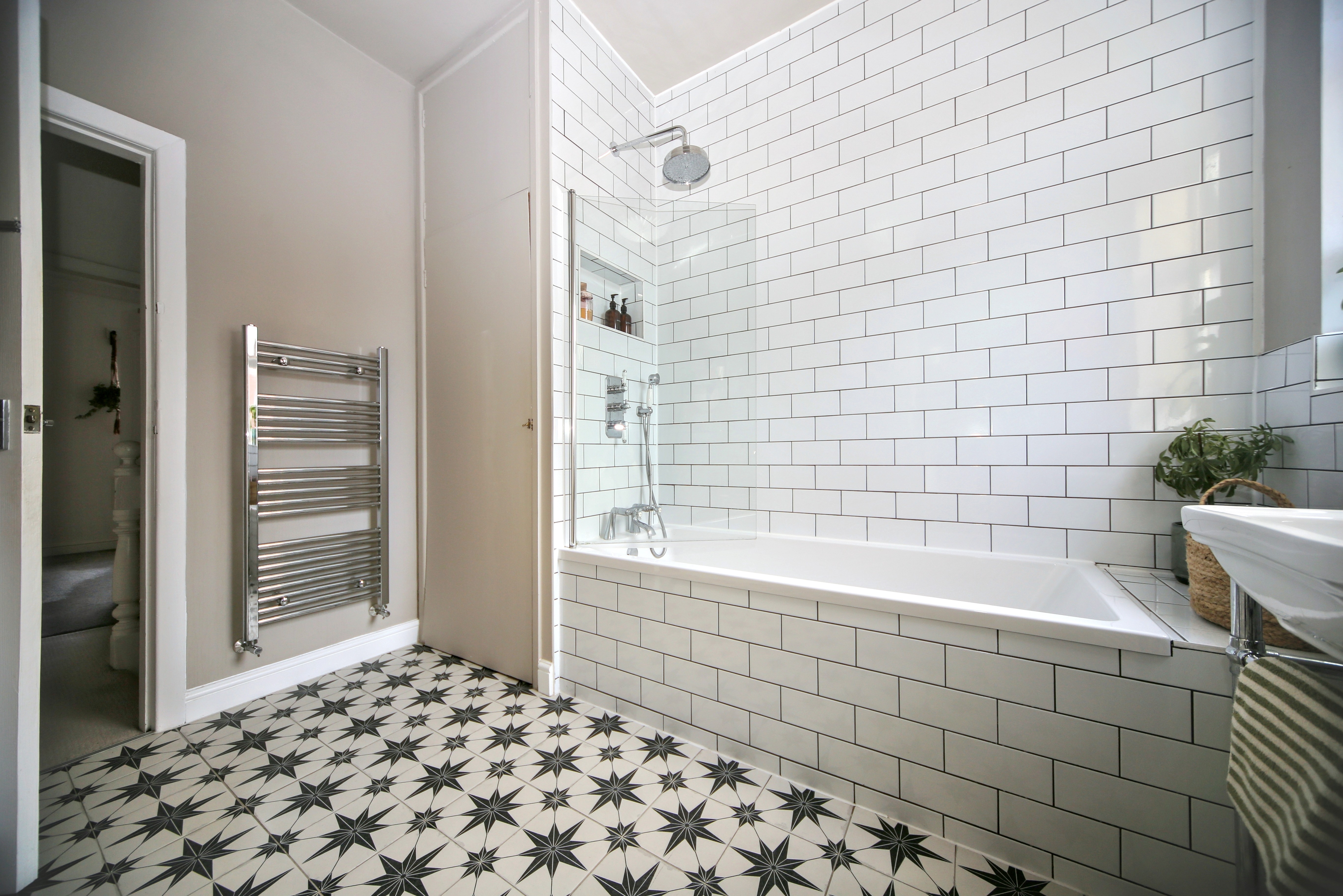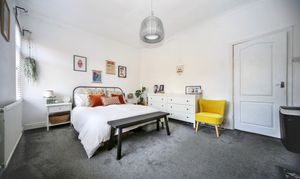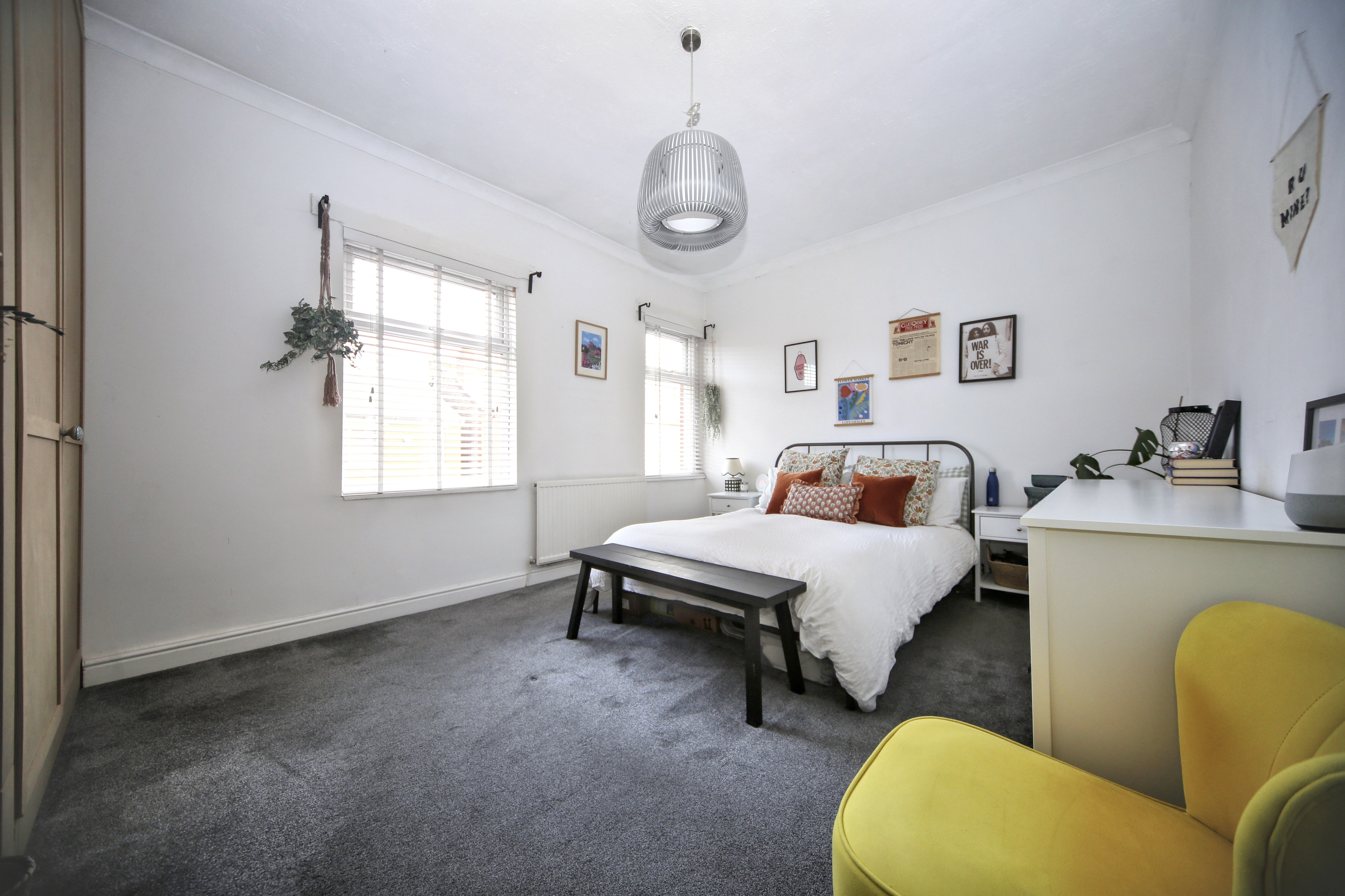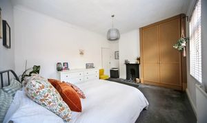 Upstairs, there are two well proportioned double bedrooms. The main bedroom features built in wardrobes and an attractive original fireplace, adding character to the room. The second double bedroom offers generous space for family, guests or a home office. A family bathroom completes the first floor.