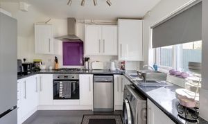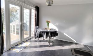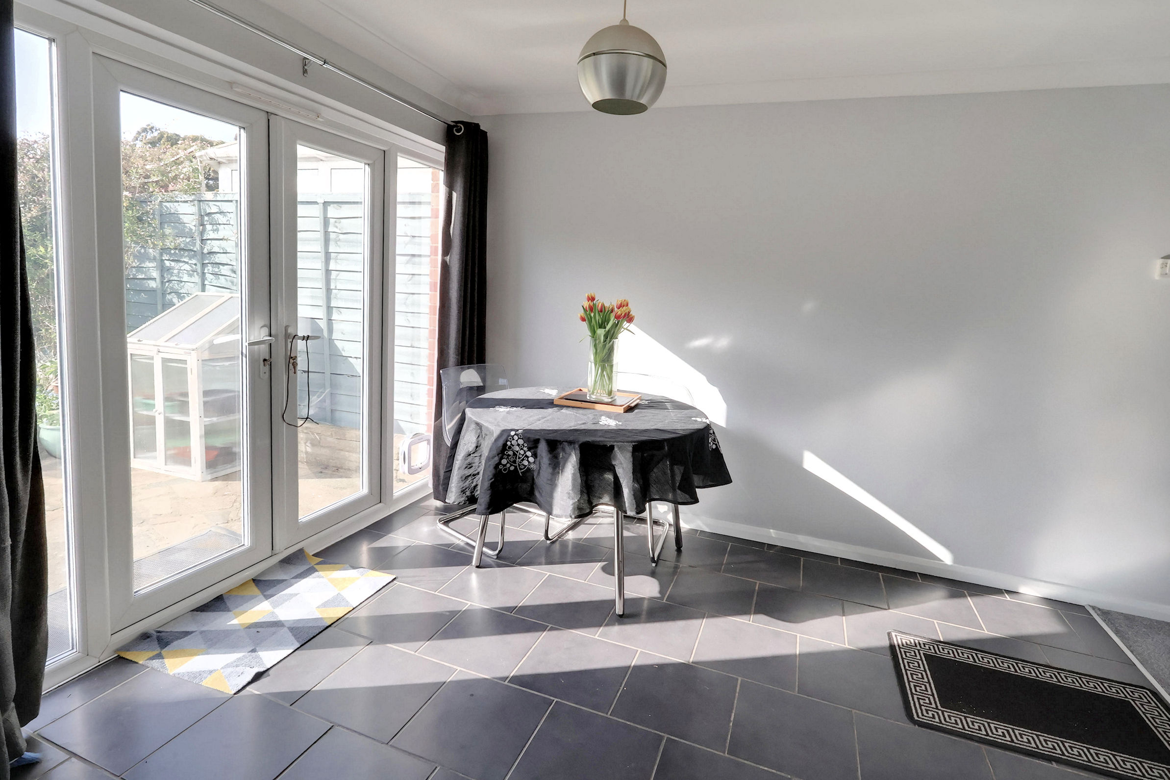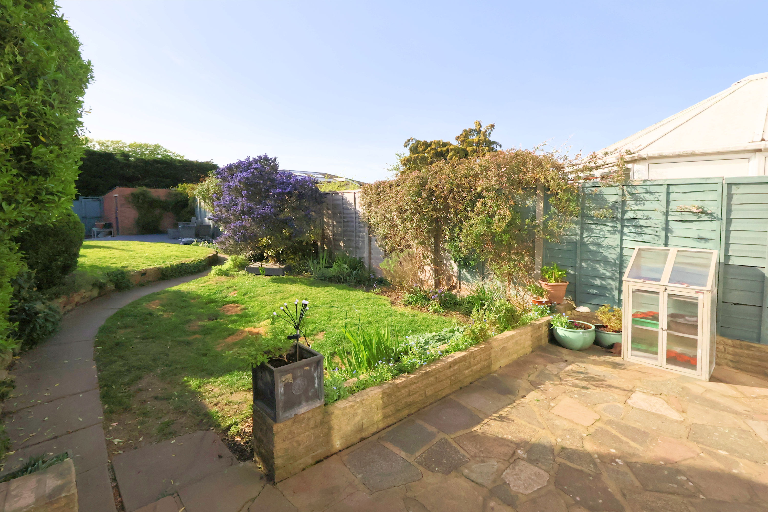 The garage can be found to the rear of the property, and vehicular access is via a small slip road at the start of Overstone Gardens. There is also a section of hardstanding at the end of the garden that could be used for off-street parking, as some neighbouring properties do.