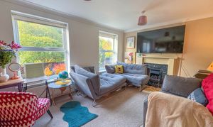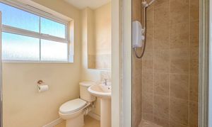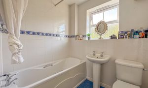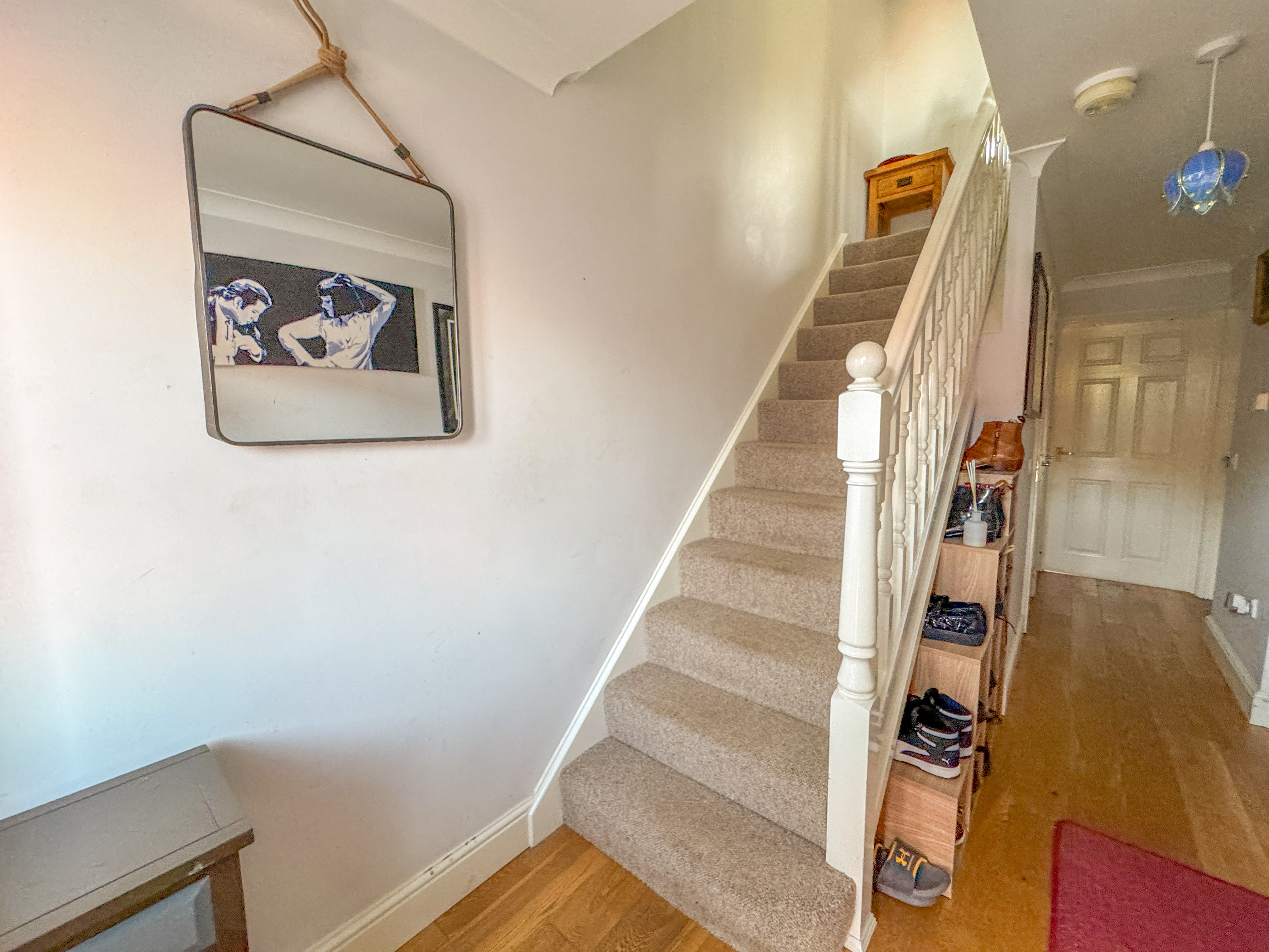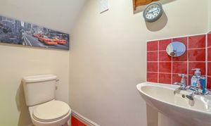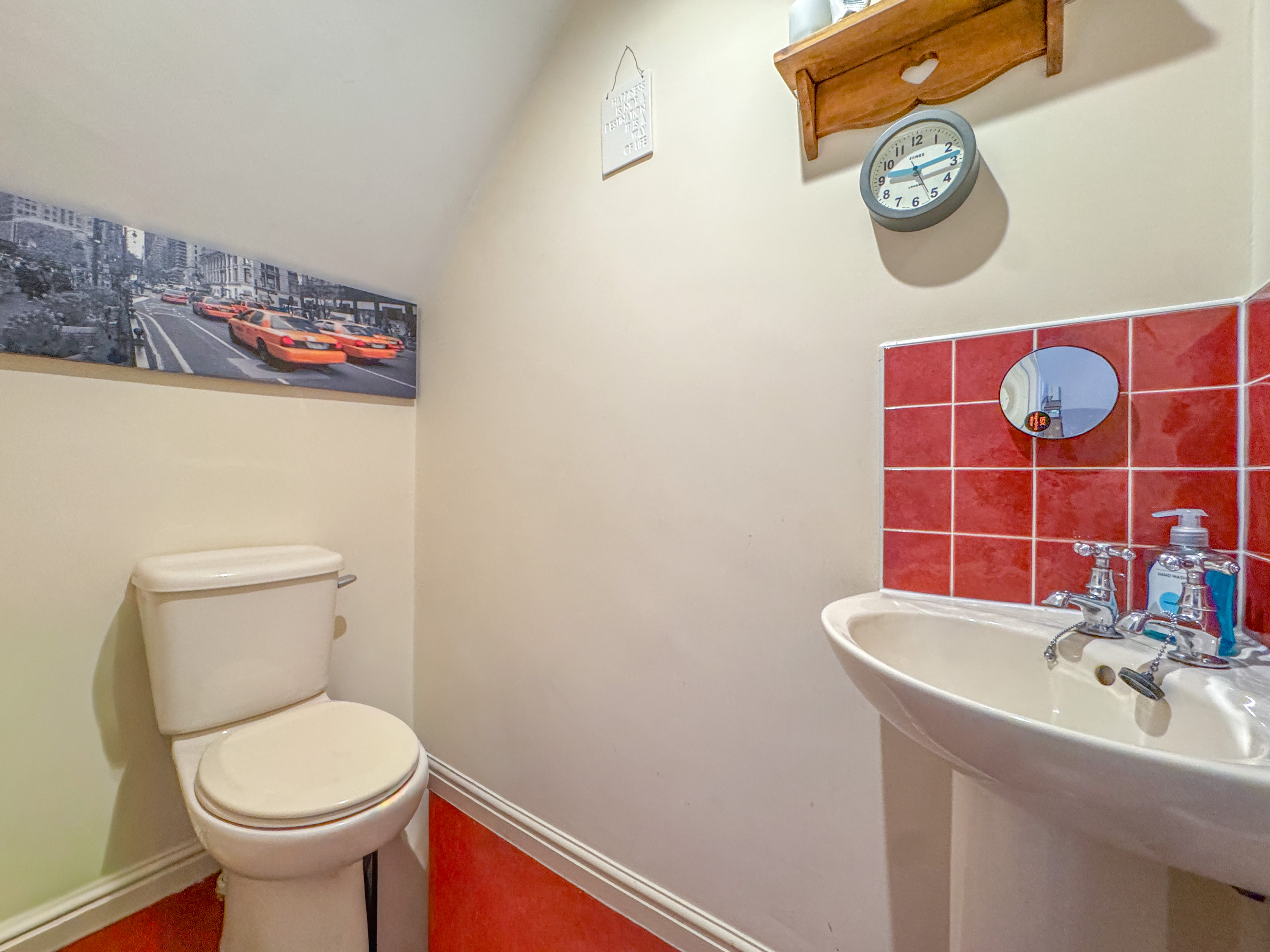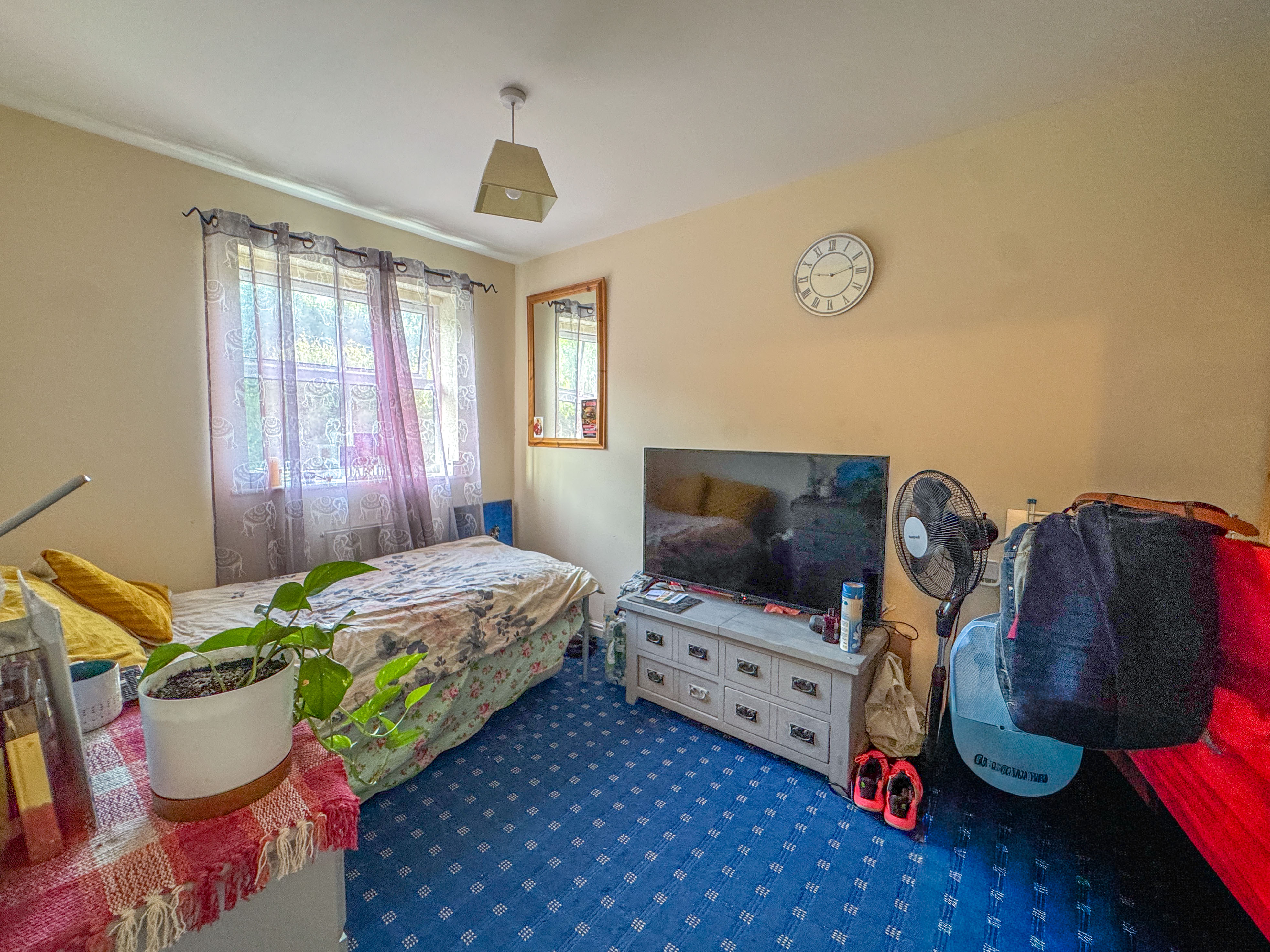 The second-floor houses two generous double bedrooms. The principal bedroom, to the front, benefits from fitted storage and a modern en-suite shower room with electric shower. The rear bedroom enjoys views over the garden and canal and is served by a main bathroom, complete with a three-piece white suite and electric shower over bath.