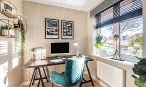 Plot 1 The Hampton is a 4 bed detached house with garage and parking. 1430 sq ft. To the ground floor is a kitchen/breakfast/dining room with doors to garden, living room with bay window, study, laundry and cloakroom. Upstairs Bedroom 1 is en suite and there is also a family bathroom.