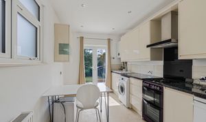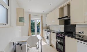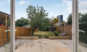 Inside, the property is immaculate, light, and airy, boasting high ceilings and beautiful period features. It is presented in move-in-ready condition, requiring no work whatsoever. The accommodation comprises a stunning bay-fronted reception room overlooking the included front garden, a large modern dual-aspect kitchen with French doors to the garden, and a generous master bedroom with direct garden access. Excellent storage is provided throughout, including deep built-in cupboards.
