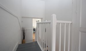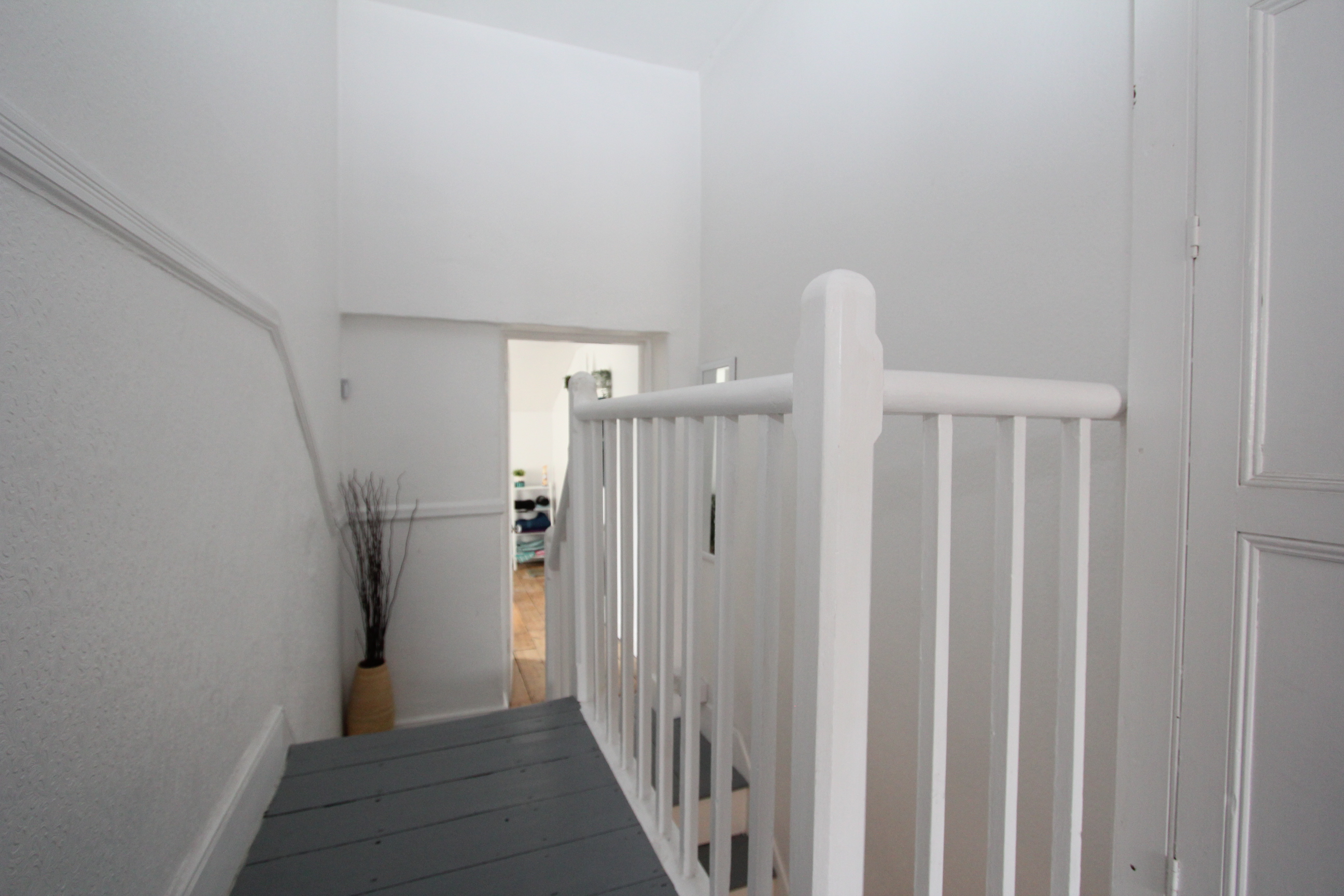 The stairs have been stripped back to the wood and painted. The landing has wooden flooring, textured walls with dado rails and a textured ceiling. Loft access and a built in storage cupboard. Doors leading off to two bedrooms and a bathroom.