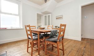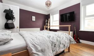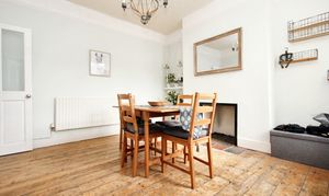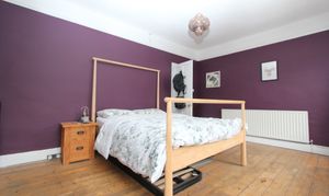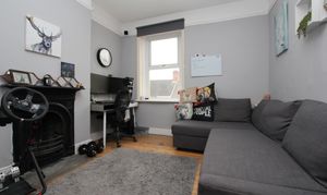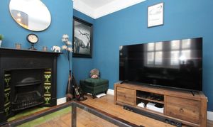 Wooden flooring, smooth walls with picture rails and a smooth ceiling. A feature period fireplace, two large front aspect windows and a radiator. Measurements exclude the recesses either side of the chimney breast.