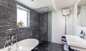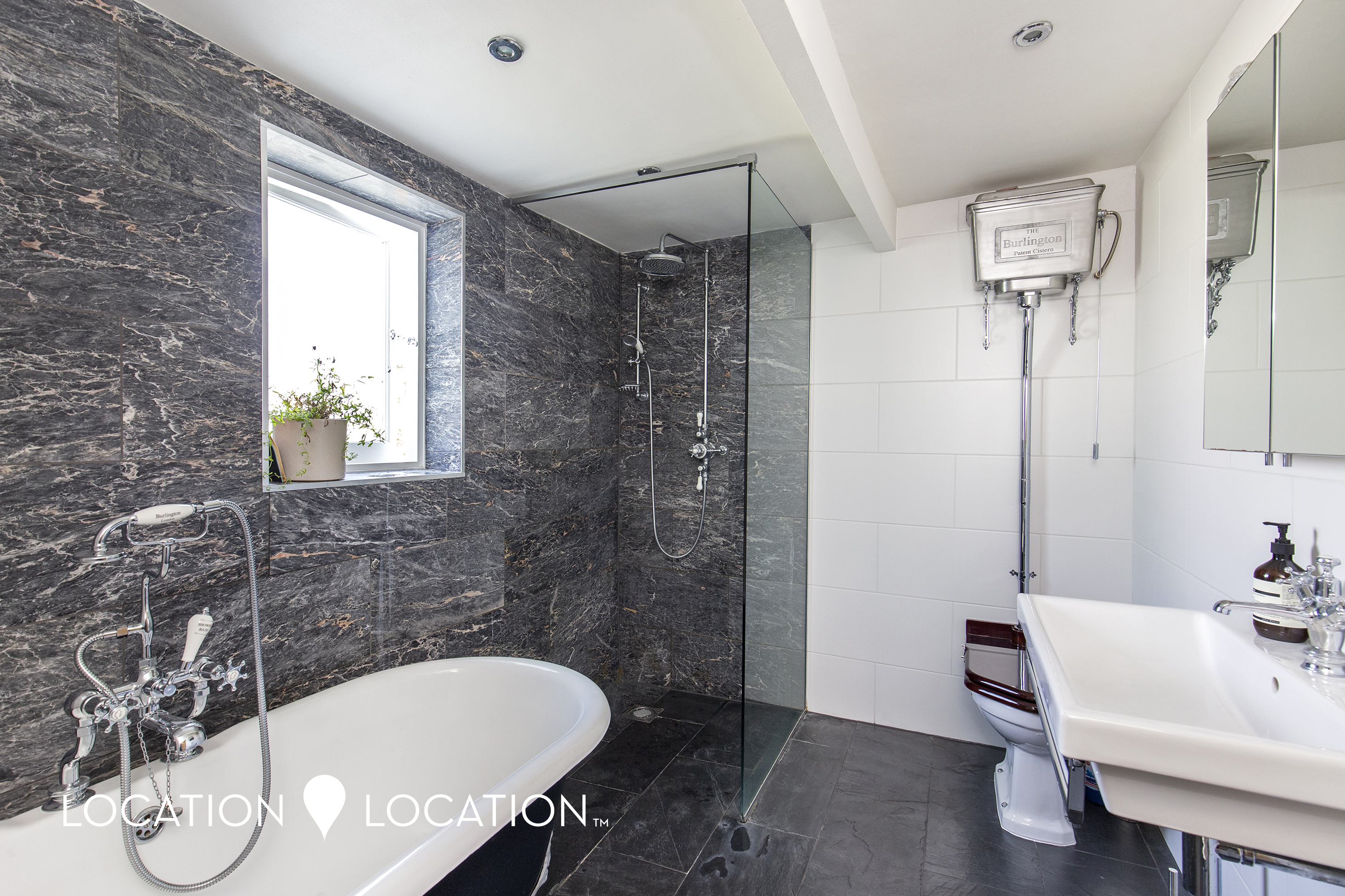 Offering an elegant blend of original charm mixed with contemporary finishes, this home comprises; four large double bedrooms, with the two main bedrooms being 16’ x 14’ and complete with original fireplace and bay window. The family bathroom comes with a freestanding bath, separate walk-in shower, and Burlington high-level cistern WC.