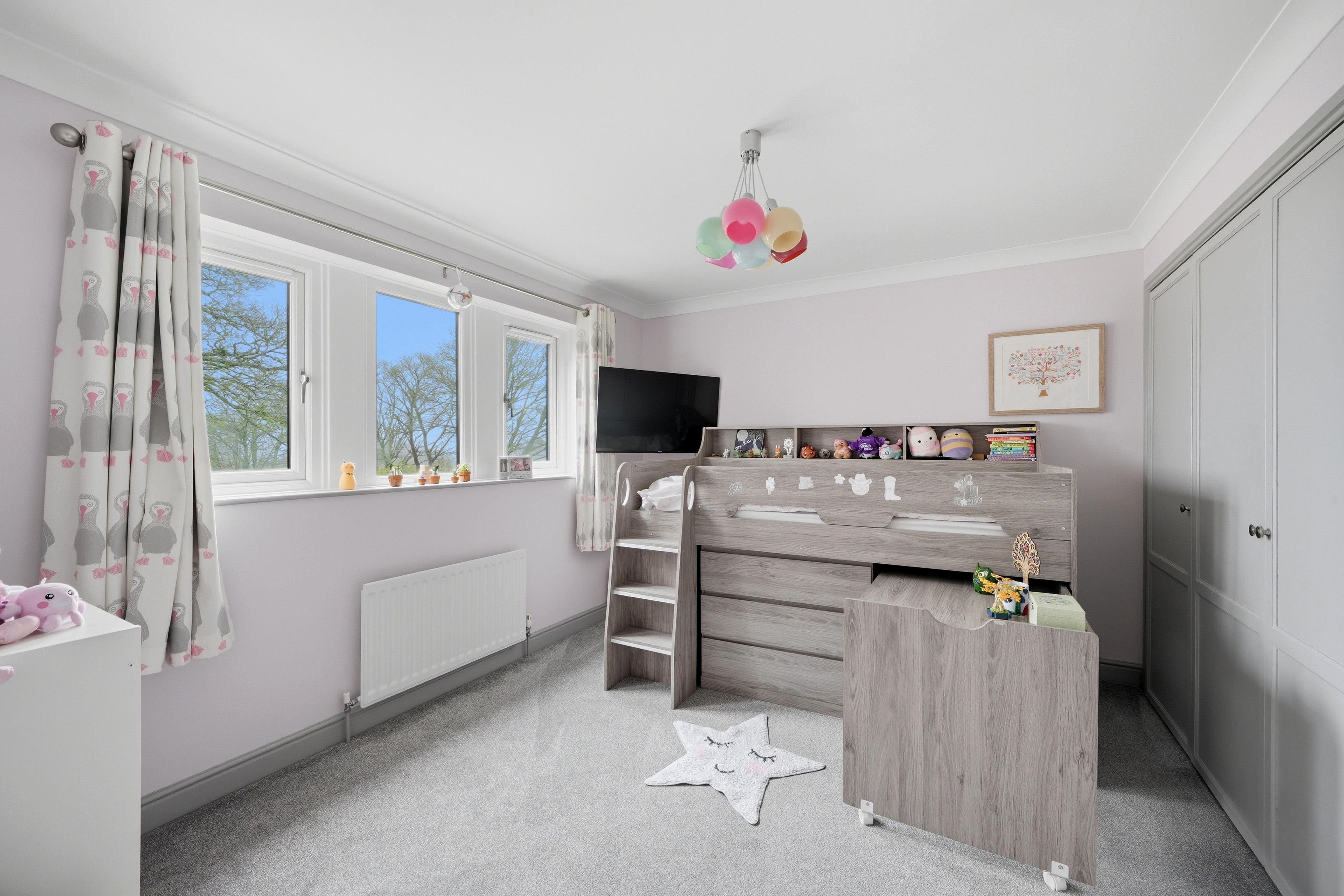 This is situated between bedrooms one and two and enjoys a similar aspect through uPVC double glazed windows. There is a ceiling light point, ceiling coving and central heating radiator.