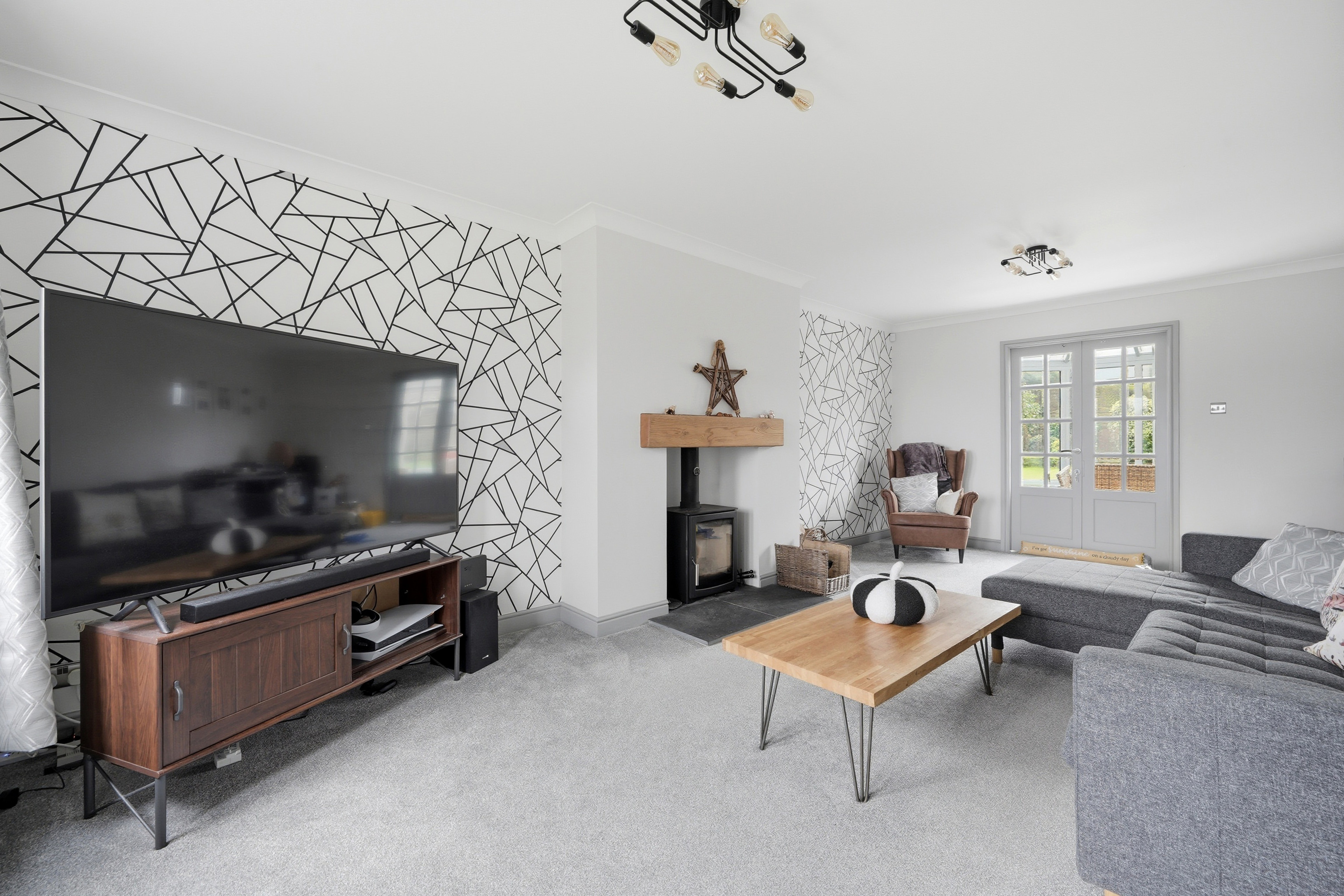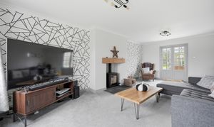 A generously proportioned reception room which has uPVC double glazed windows looking out over the front garden and with a pleasant aspect beyond, in addition there are twin timber and bevelled glass French doors to the rear elevation opening into the conservatory. There are two ceiling light points, ceiling coving, central heating radiator and as the main focal point of the room housed within the chimney breast there is a wood burning stove resting on a slate tiled hearth with oak mantle.
