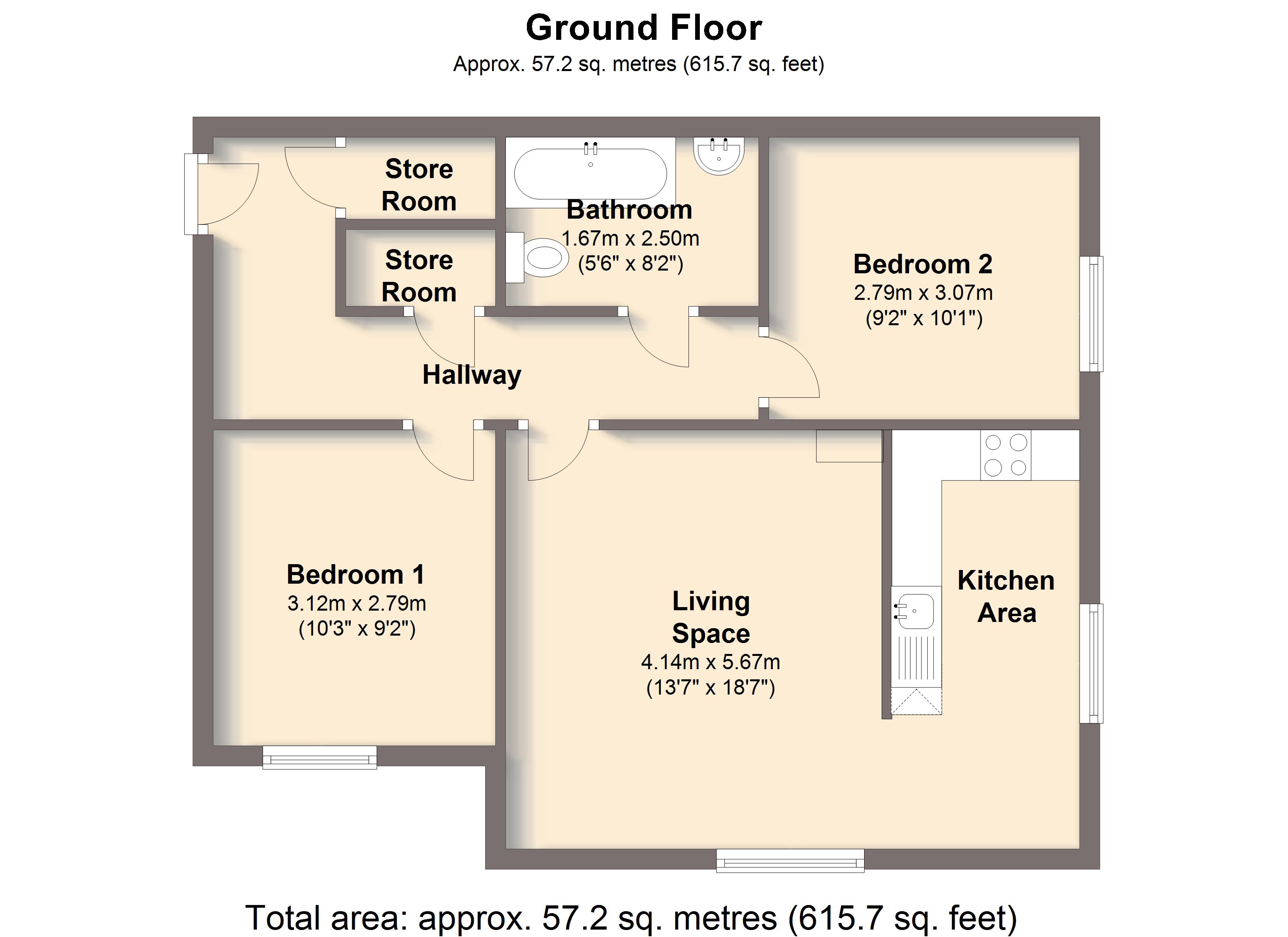 - Approx Sq Feet: 614 sqft