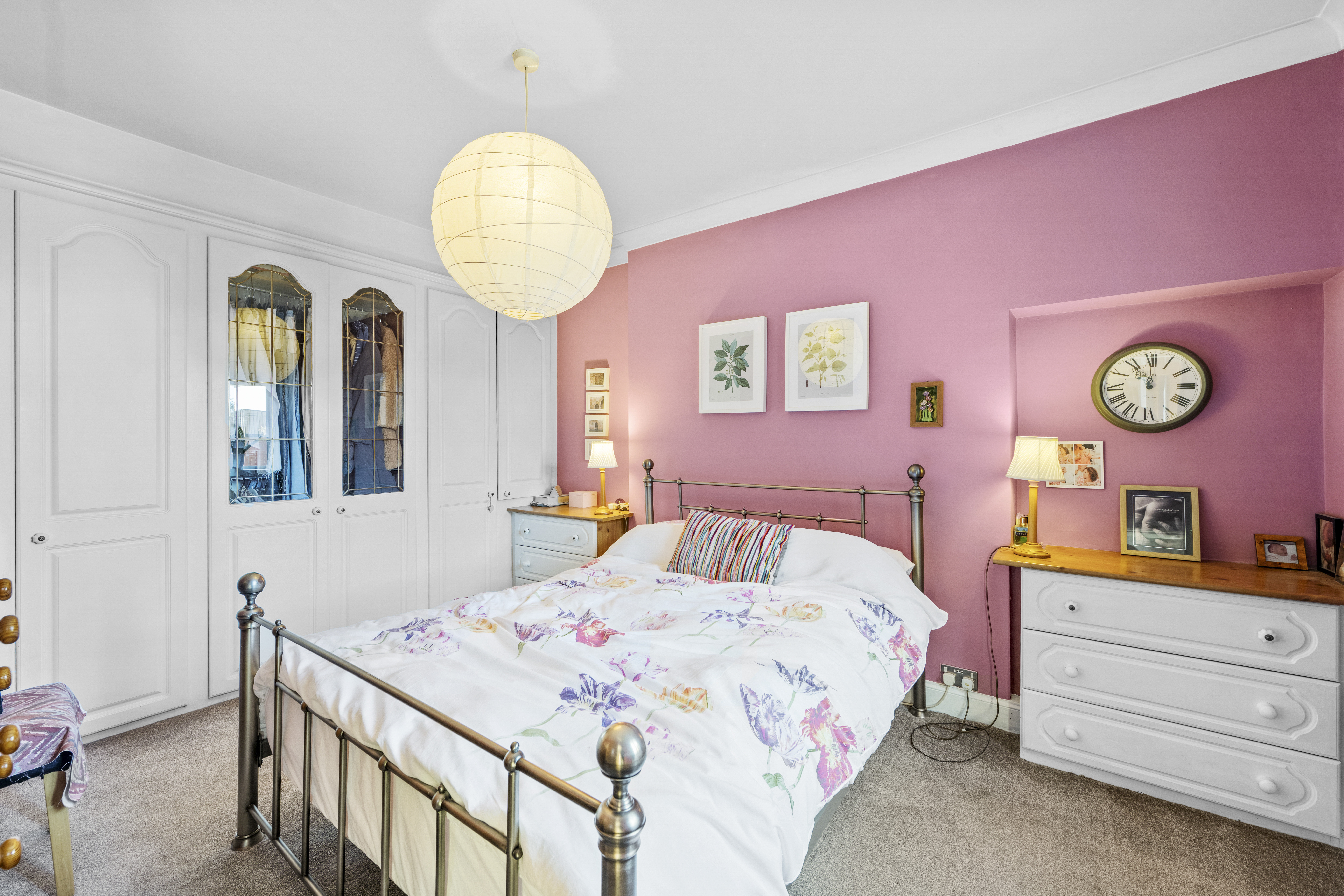 Double bedroom with front facing window and venetian blind. Wall to wall fitted wardrobes offering an abundance of storage. Fitted carpet, radiator.