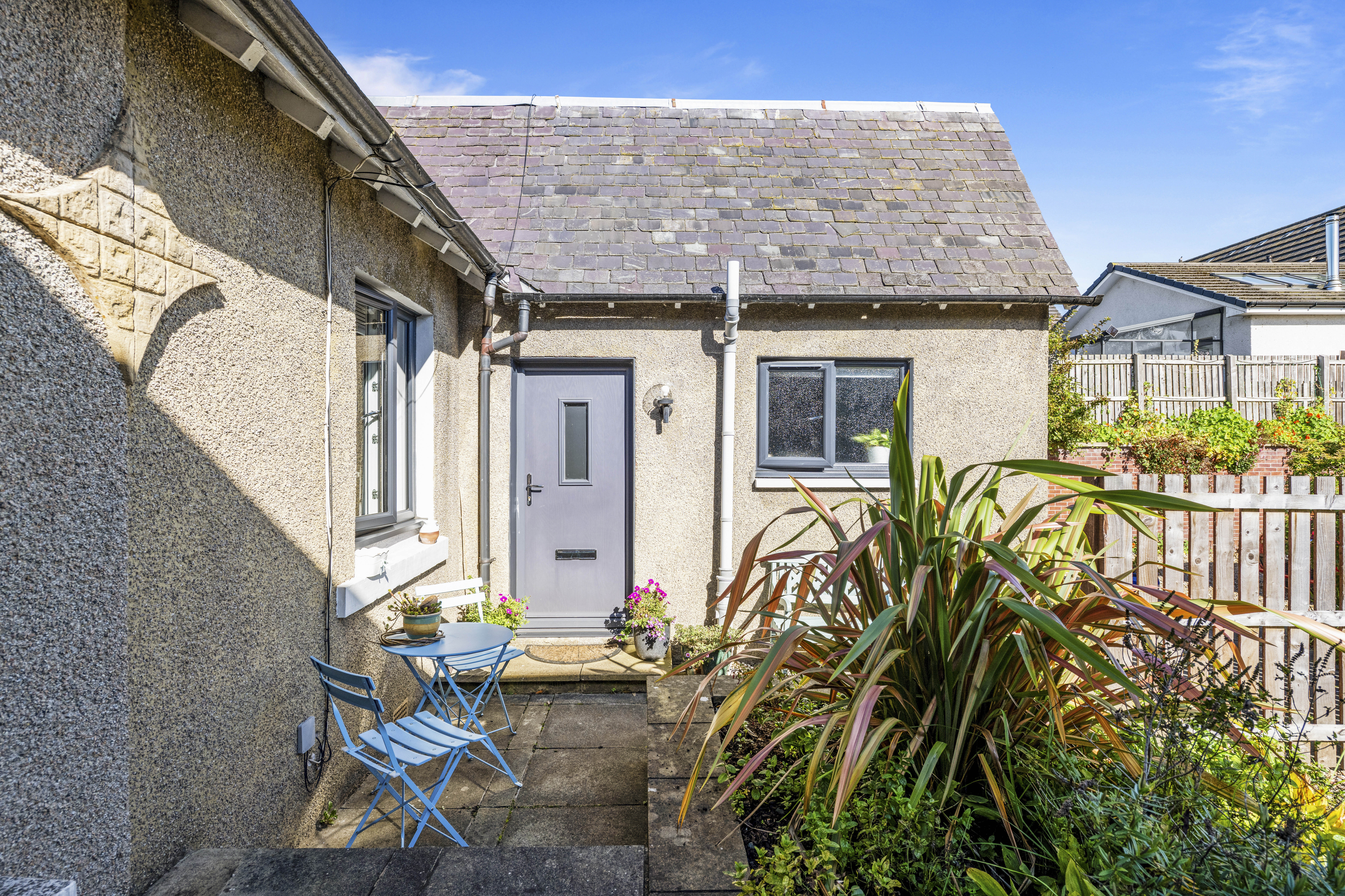 Outside, the property features an expansive front garden primarily adorned with chips, providing a low-maintenance yet visually appealing exterior. Additionally, the front garden offers the convenience of parking and turning space for several vehicles, along with a practical log store. Moving to the side garden, you'll find two sheds ideal for storage solutions. The rear of the property unveils a terraced garden, thoughtfully designed on three levels to maximise outdoor living potential. Relax and soak up the sun on the patio, creating a private suntrap for leisurely afternoons. Whether you seek a serene spot to unwind or a perfect place for entertaining guests, this property seamlessly marries indoor comfort with outdoor charm, offering a versatile living space for all seasons.