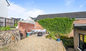 Large front garden mainly laid to chips with parking and turning for several cars. Log store. The side garden has two sheds and the rear terraced garden is on three levels and includes a suntrap patio.
