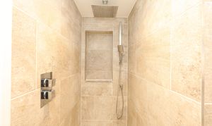 - An Elegant Family Bathroom Complements The Bedrooms With A Double Vanity Unit & A Separate Shower