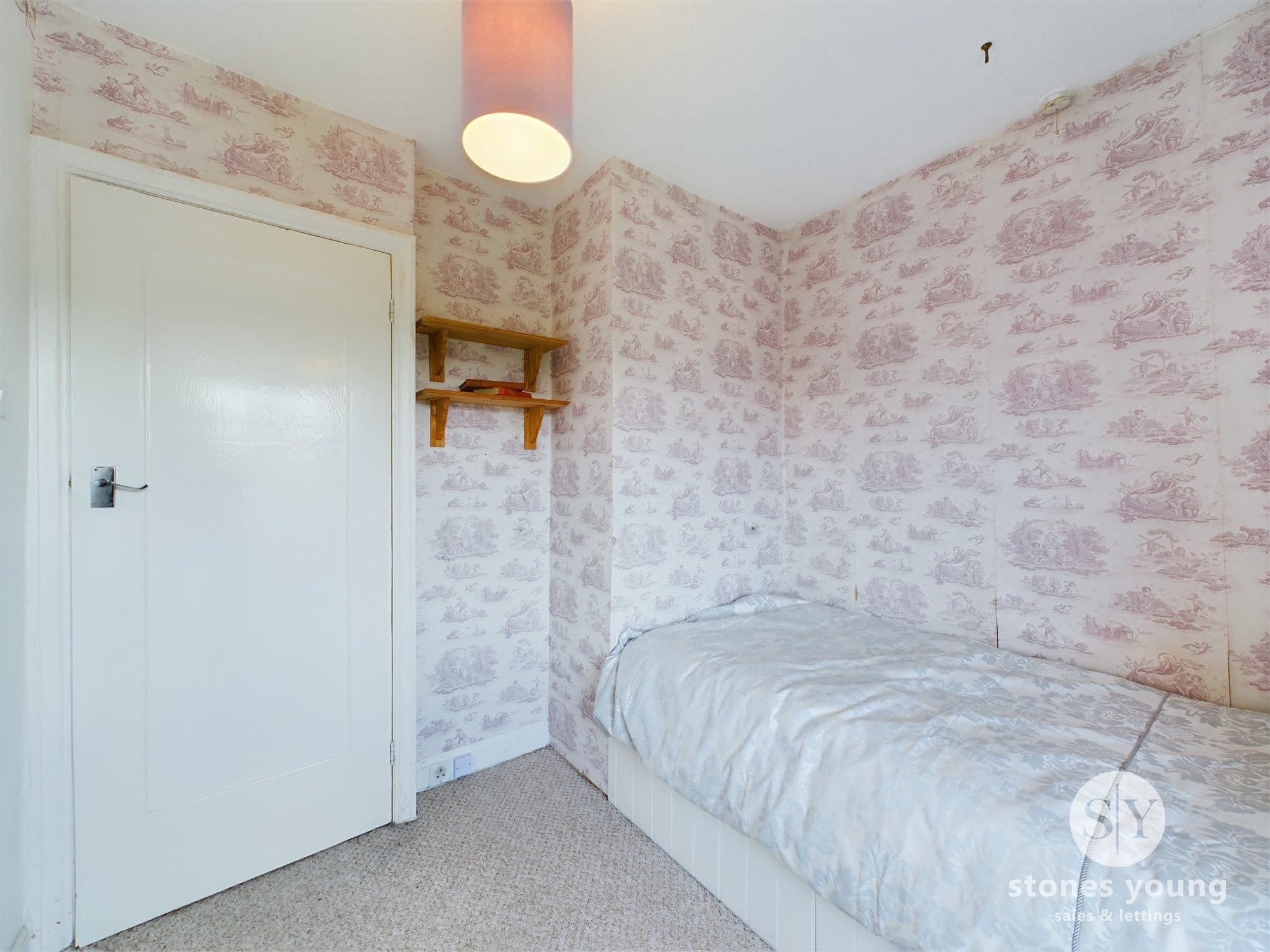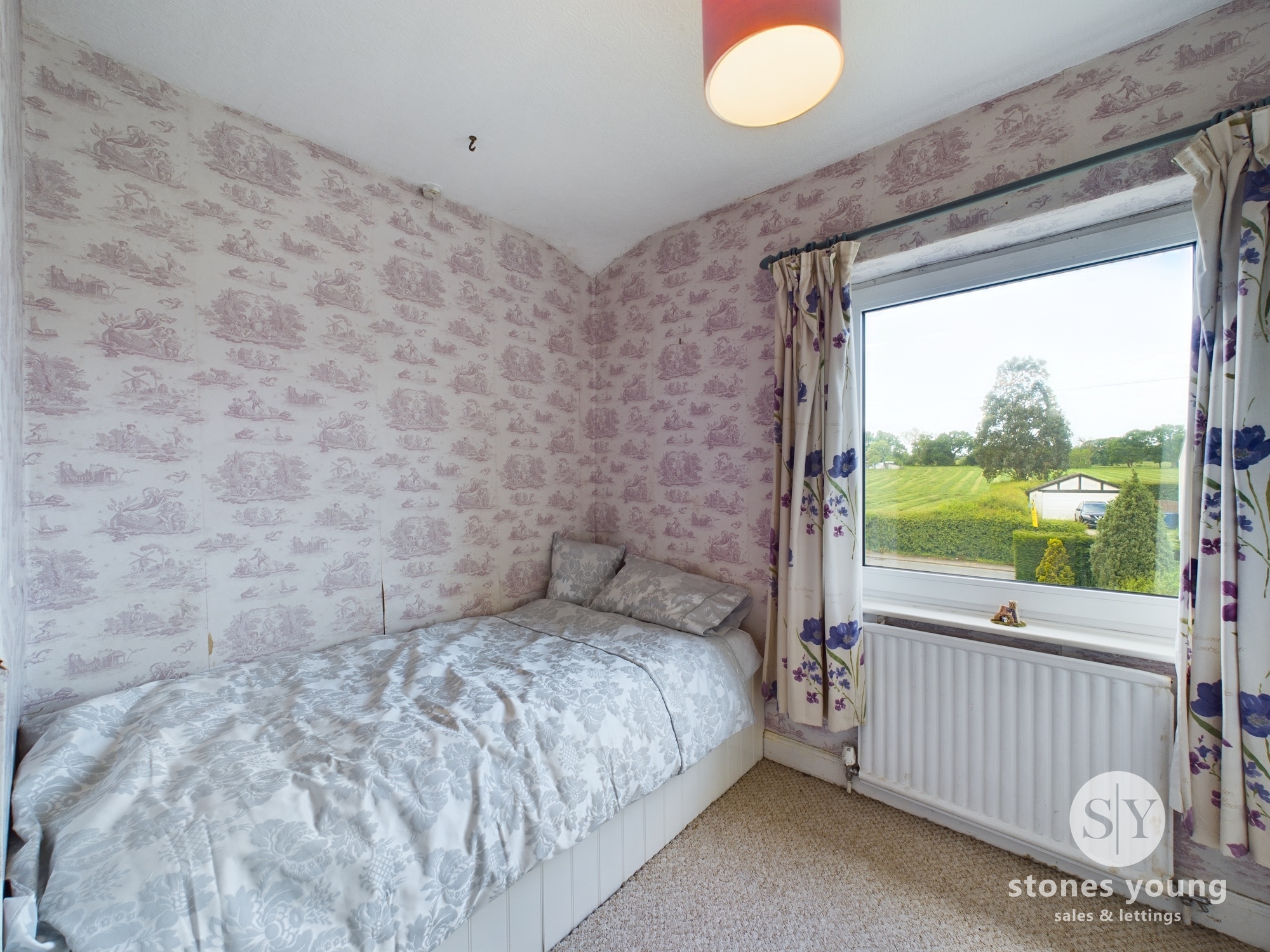 Single bedroom with carpet flooring, panel radiator, uPVC double glazed window.