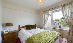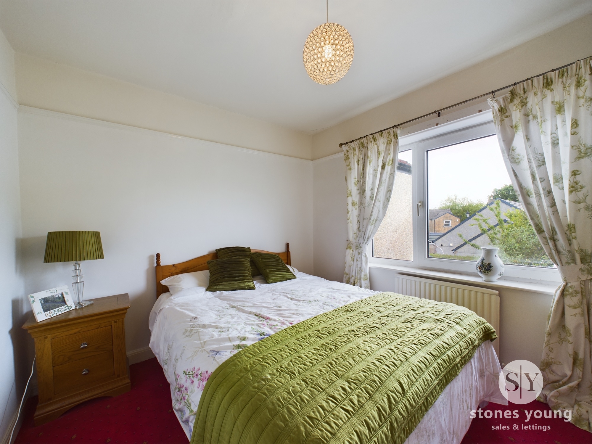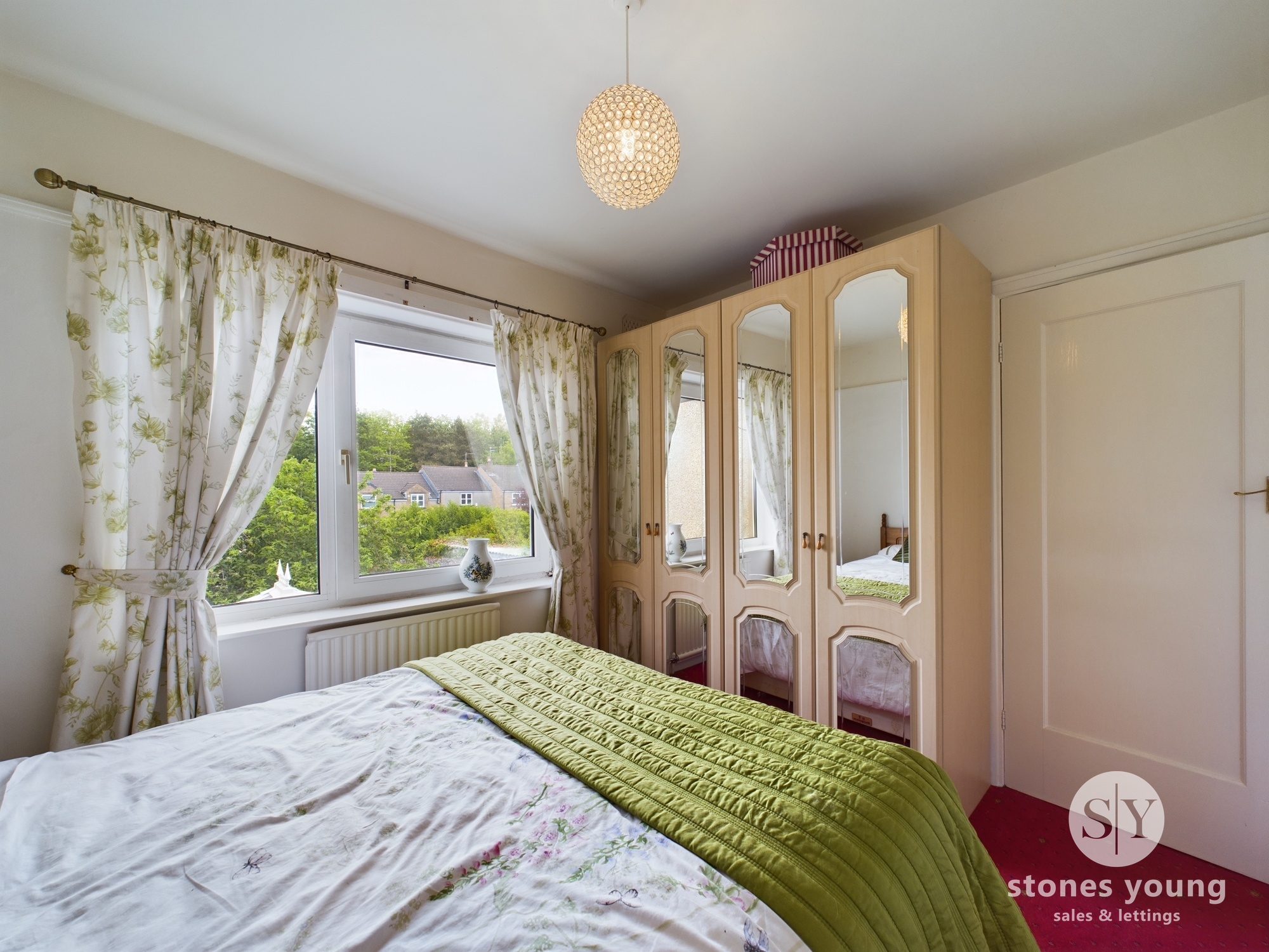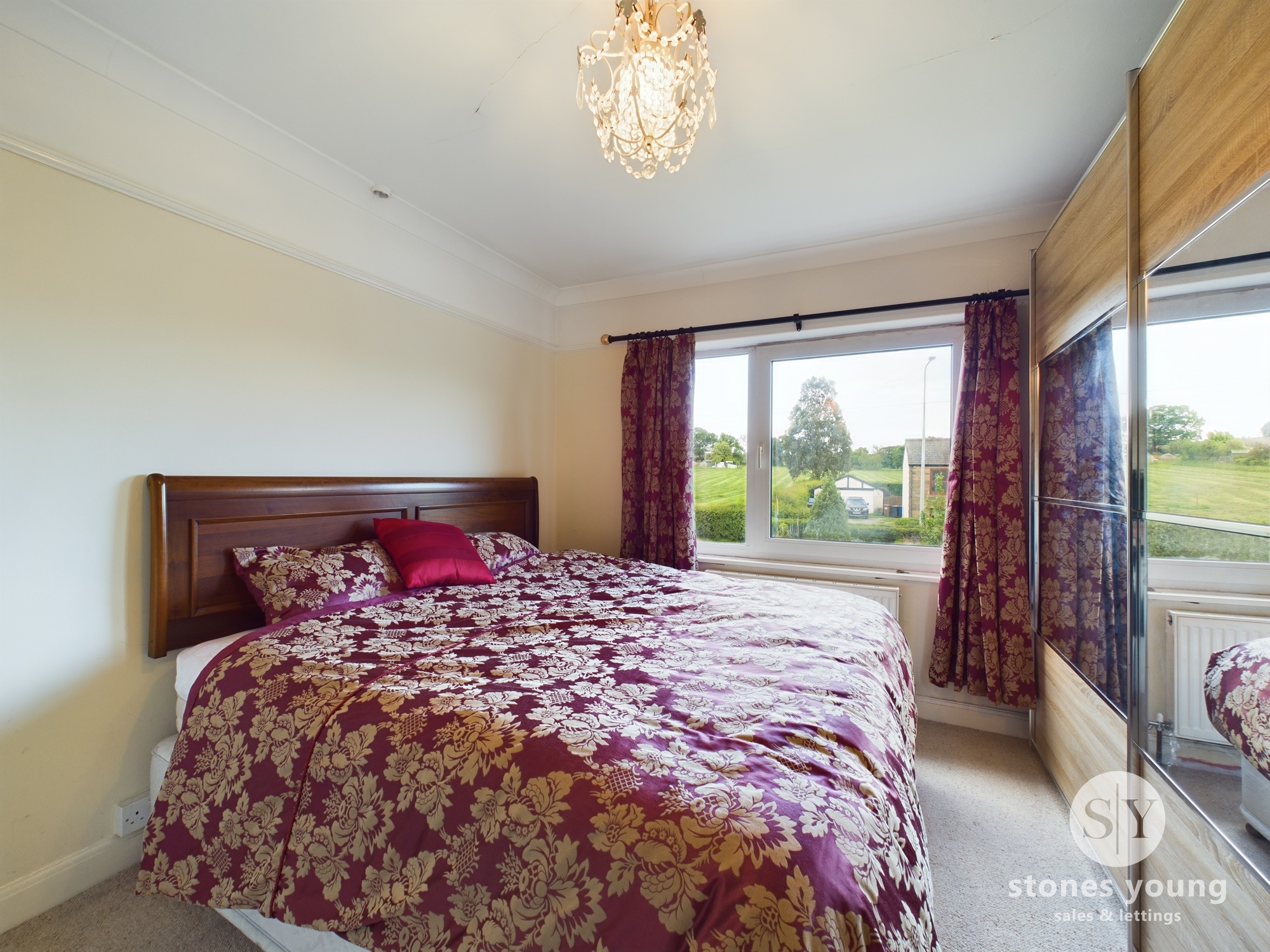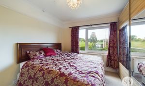 Double bedroom with carpet flooring, panel radiator, uPVC double glazed window.