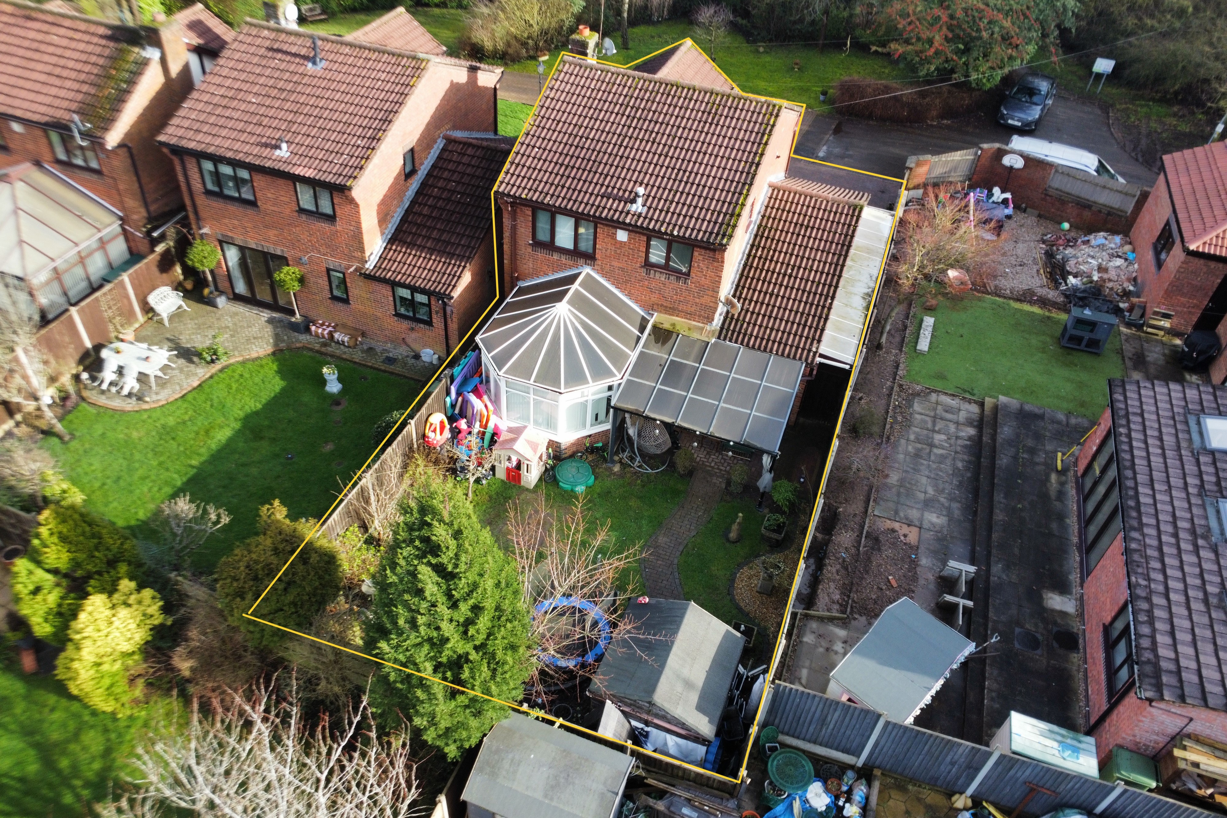 - Spacious lounge, dining room, and conservatory