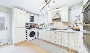The ground floor features a welcoming entrance hall leading to a spacious 14'10" lounge, ideal for relaxation and entertaining. From here, double doors open into a bright dining room, which in turn flows into a charming conservatory, enhancing the sense of light and space and offering a wonderful spot overlooking the garden.