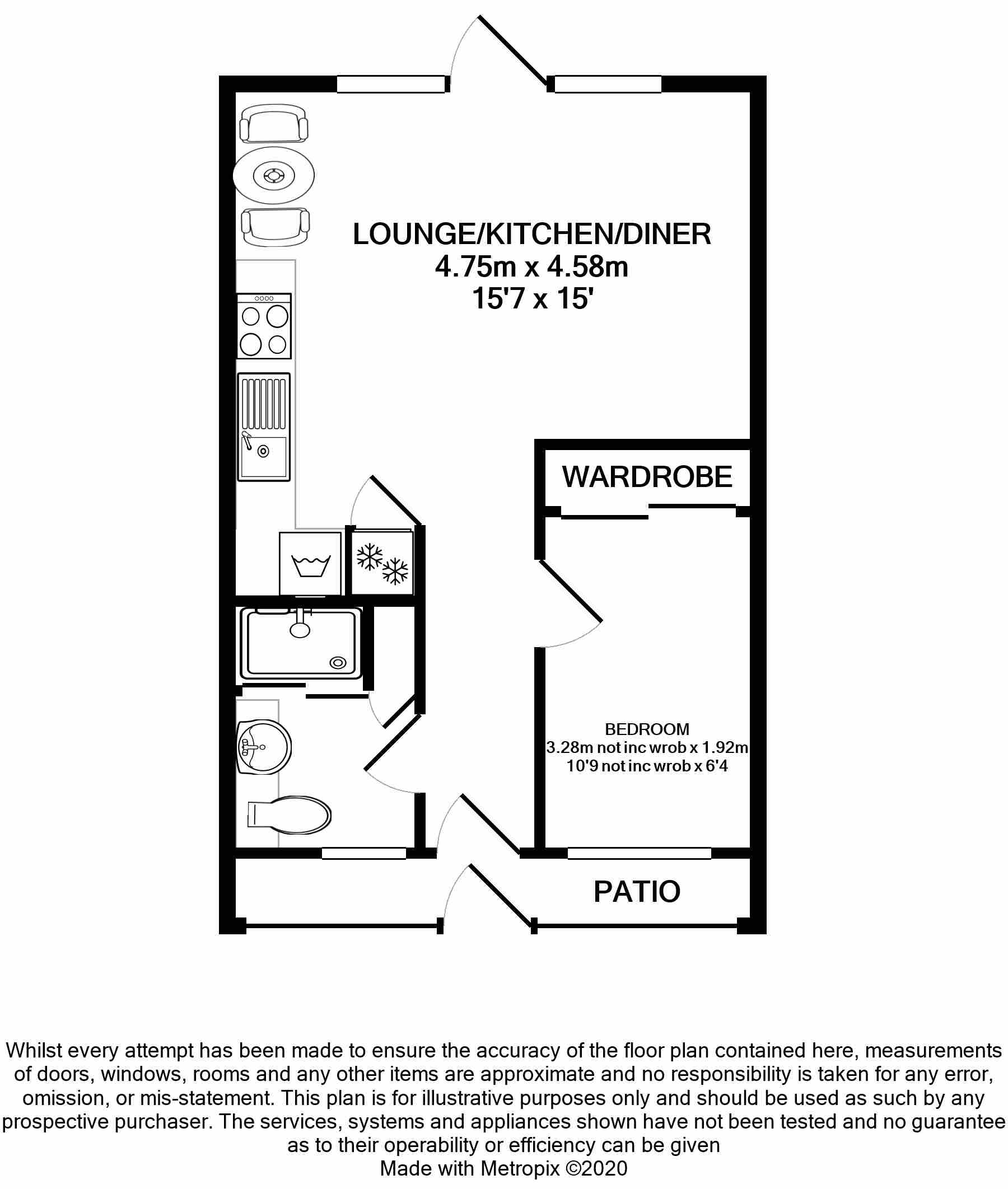 - Bright Lounge/Kitchen/ Dining Room with fitted hob, oven, fridge and freezer.