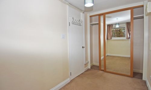 - Bedroom with sliding mirrored doors to inbuilt wardrobe cupboard.