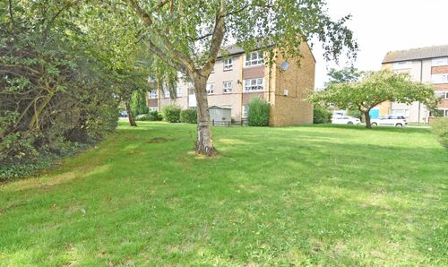 Rear shared grassed area. The Title Plan also includes one of the lock up store cupboards to the left rear of the block.