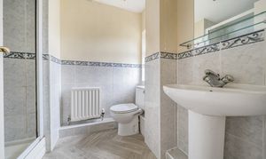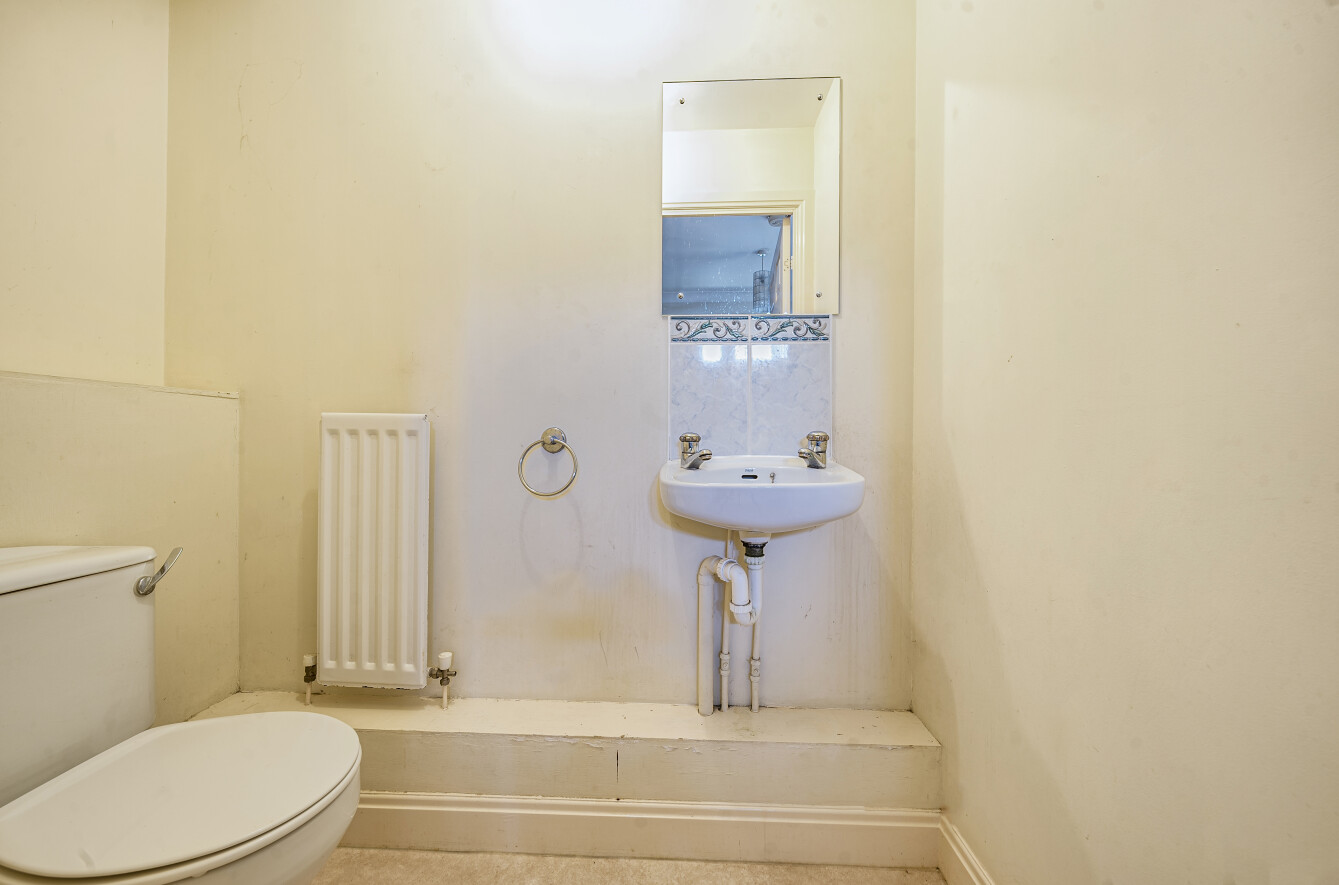 The winding stairwell leads to the first-floor landing providing access to two double bedrooms, a good-sized single room, airing cupboard, and family bathroom. Bedrooms one and two have built-in wardrobes, with bedroom one also having an ensuite shower room. The family bathroom, in need of some modernisation, is currently fitted with a white suite comprising panelled bath with shower, WC, and pedestal basin.