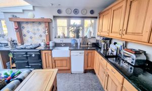 Entrance Hall stairs to first floor and storage. Cloakroom/WC. Bay fronted Sitting Room feature wood burner and brick surround. Separate Dining Room / optional Bedroom 3. Extended Kitchen / Breakfast Room (2010) fitted range of units, space for small table and chairs, gas Rayburn (central heating + hot water), space for dishwasher and side door. Utility Room space and plumbing for appliances plus sink unit.