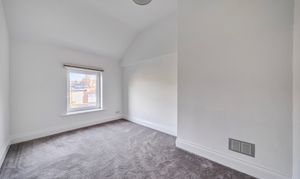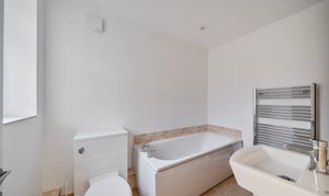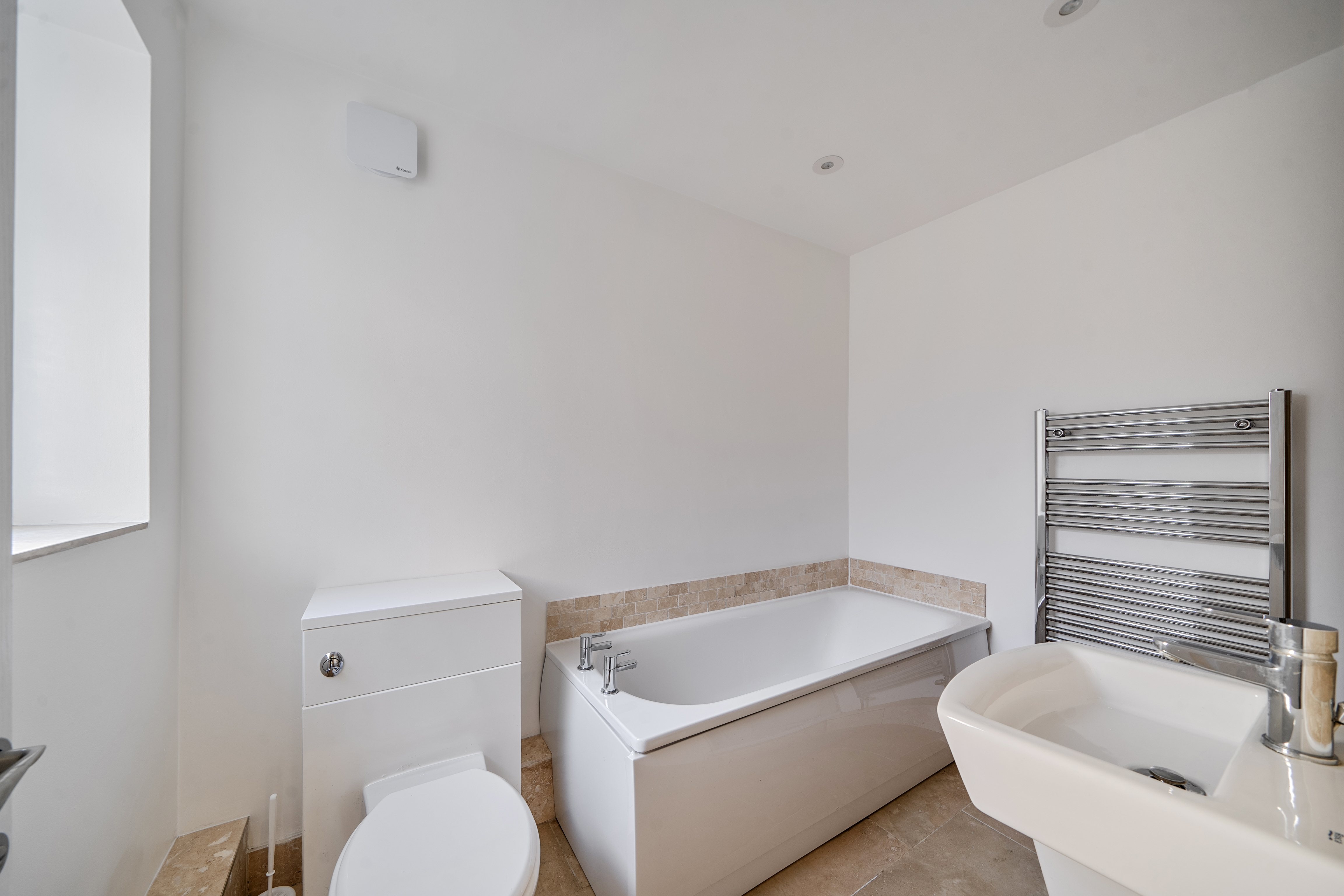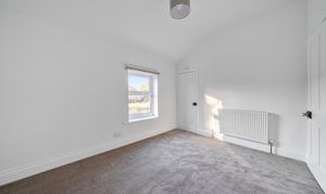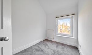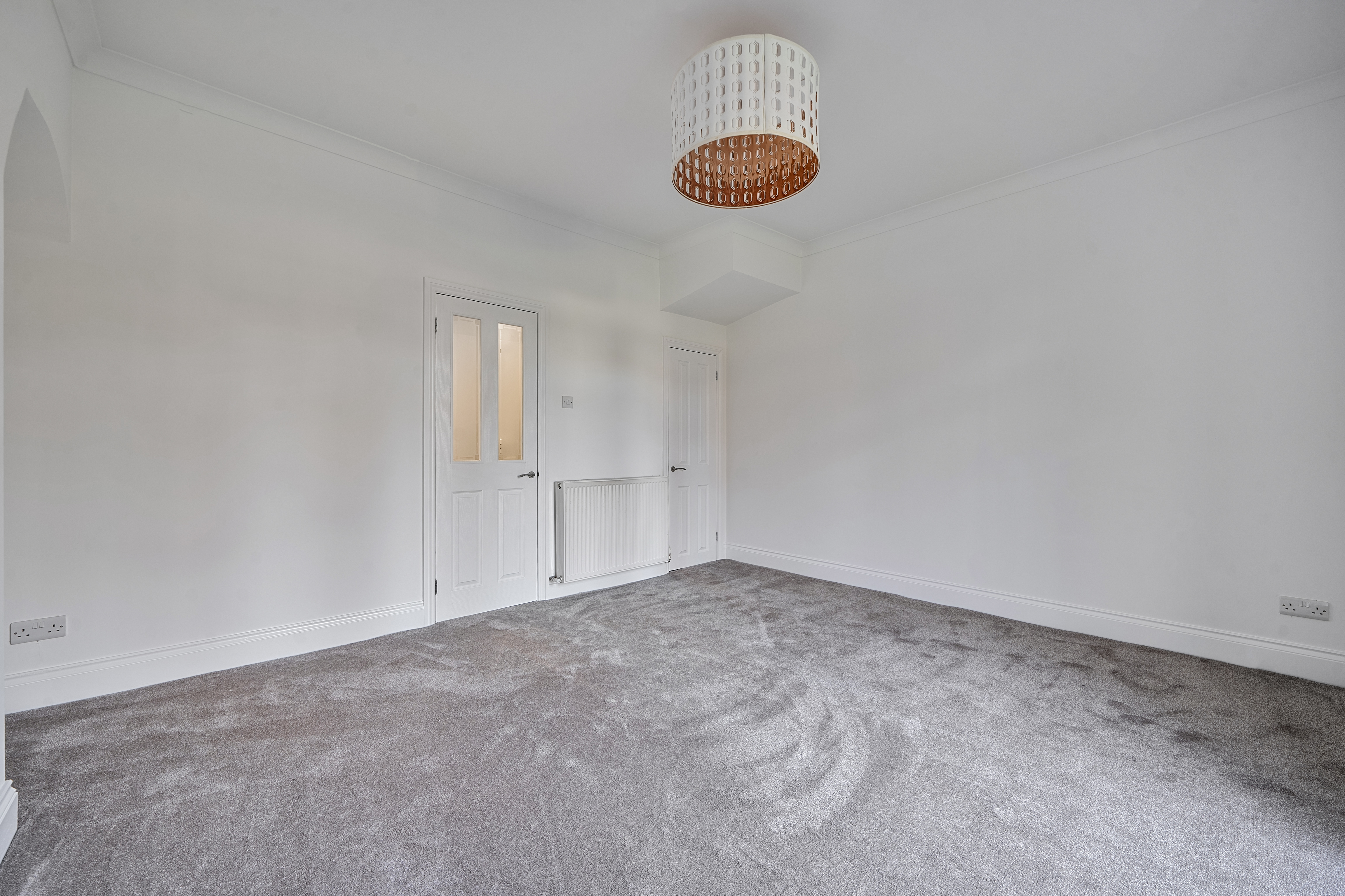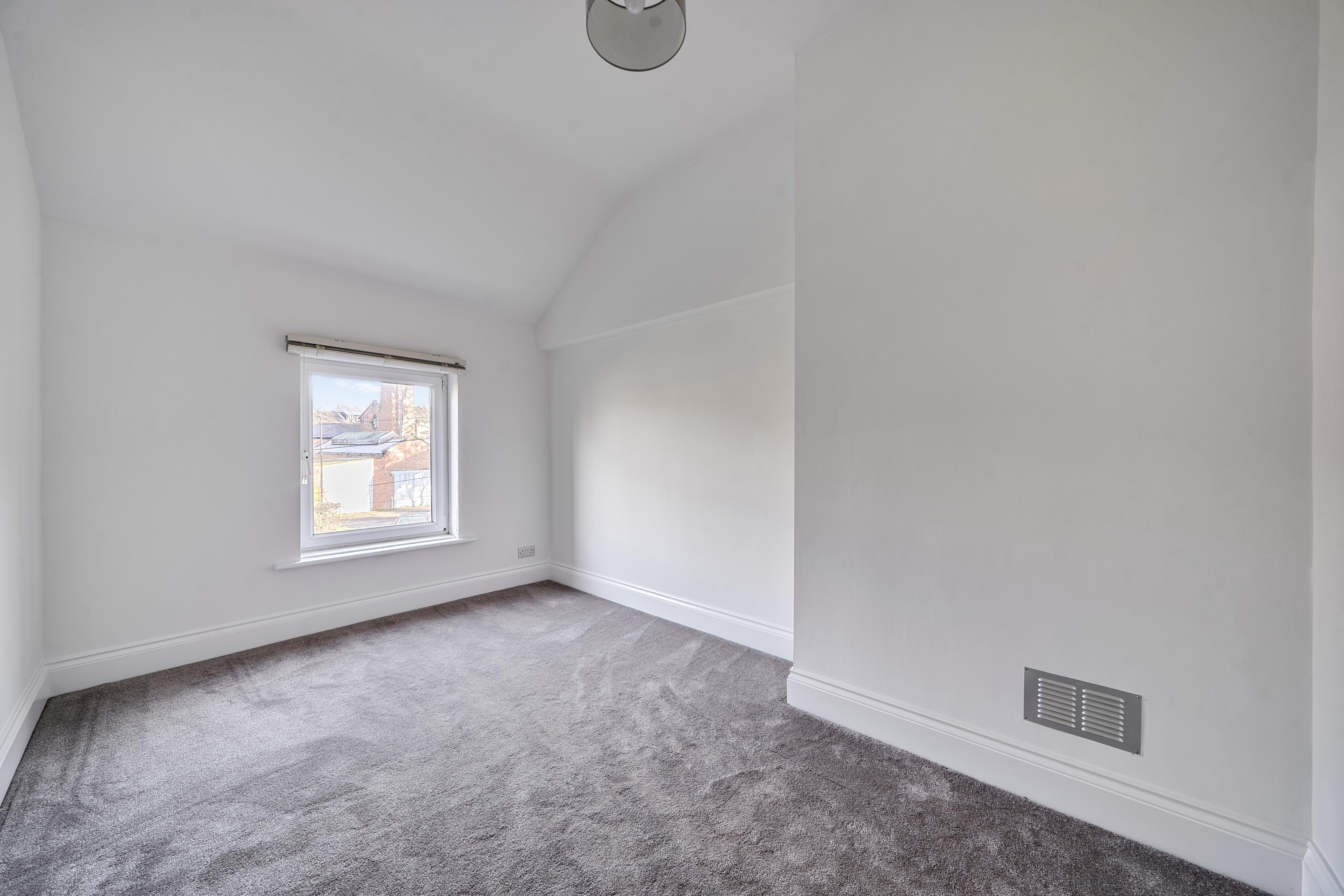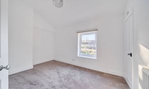 Upstairs, the well-lit principal bedroom benefits from a private storage cupboard, and a second double bedroom borders the third, smaller bedroom.