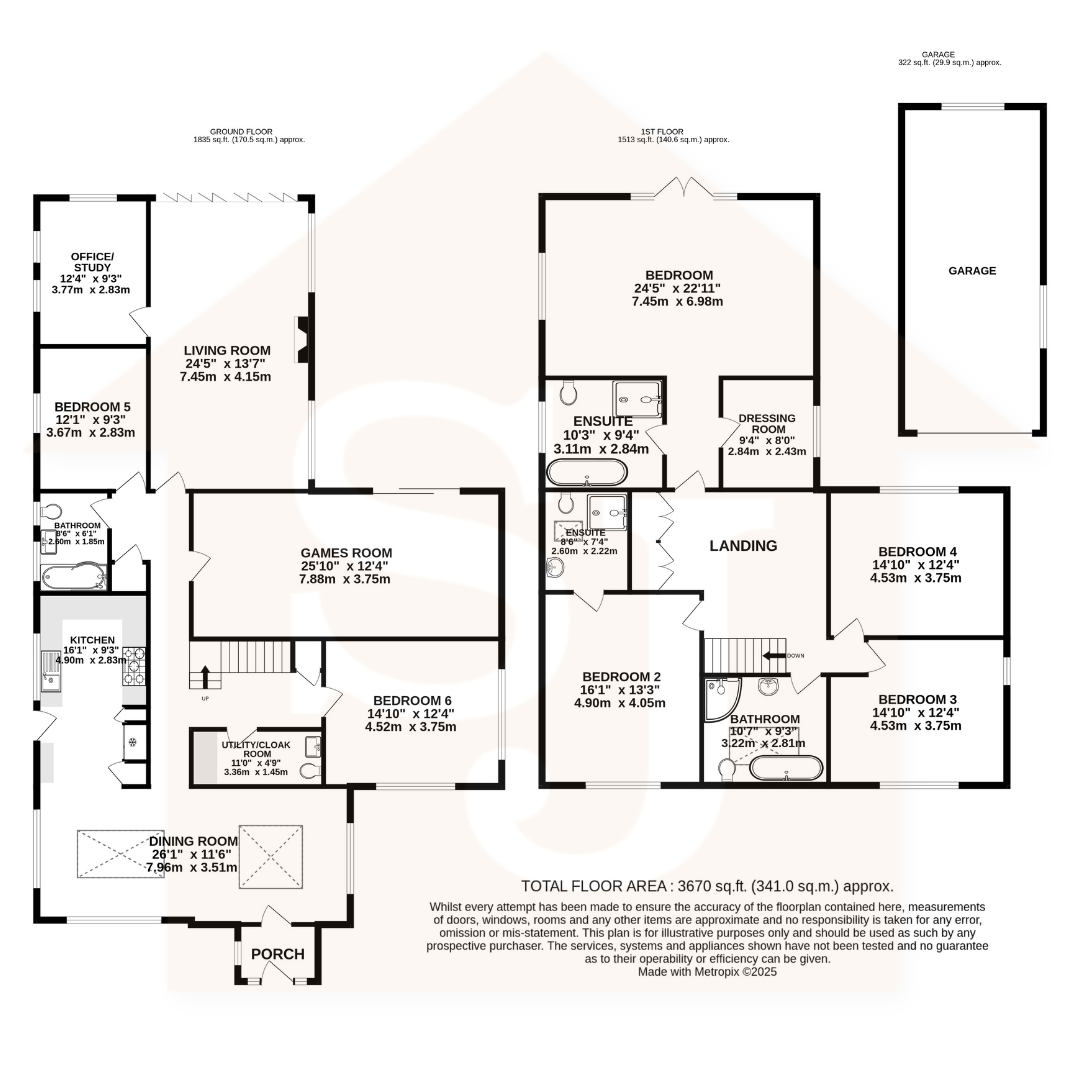 With two bedrooms downstairs, there is an abundance of sleeping space space and options for layout. There is a large games room which leads out to the rear patio.