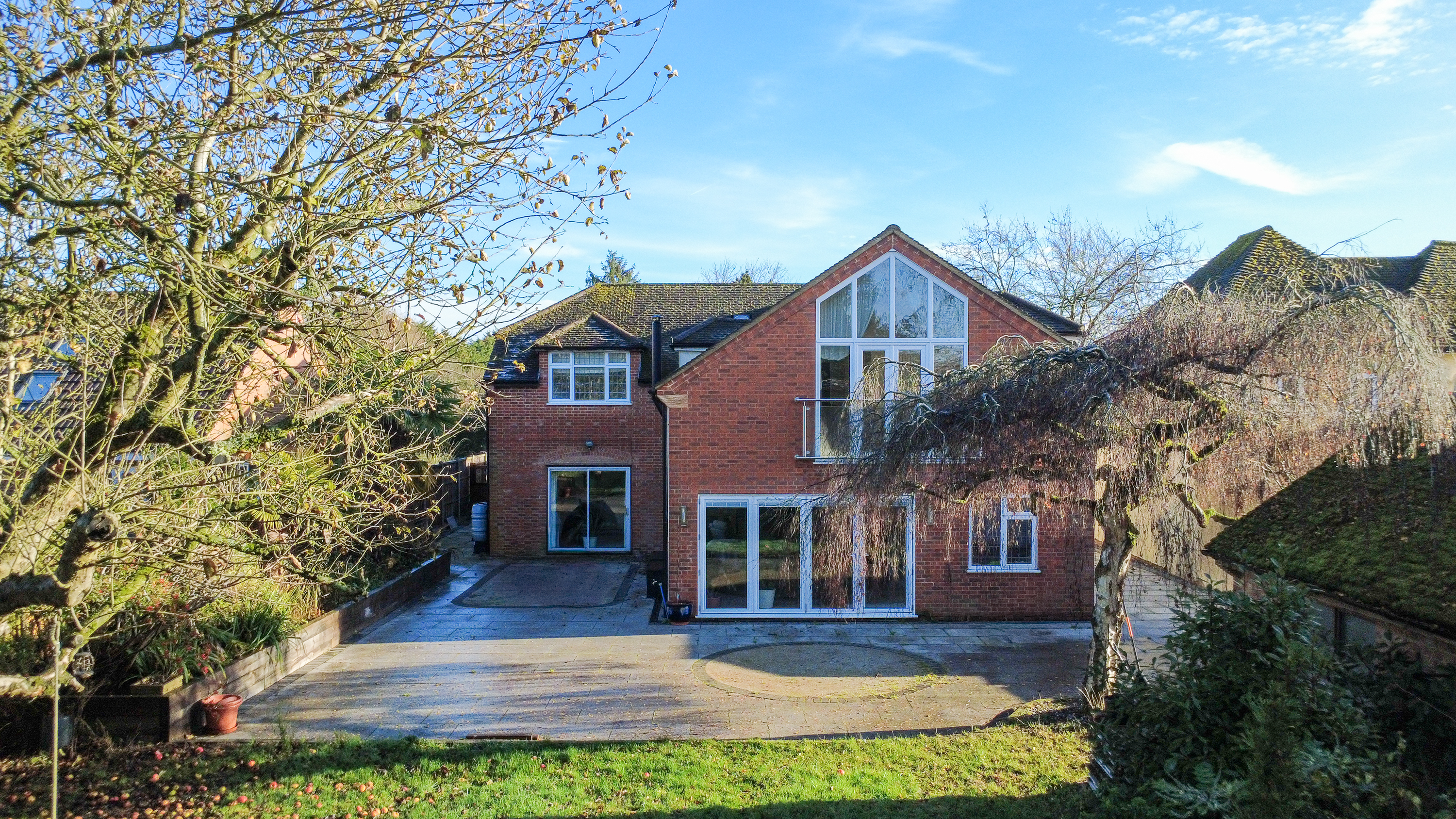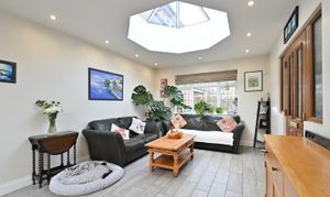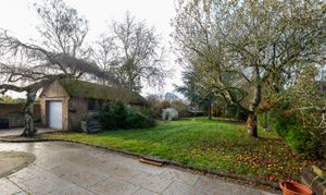 The expansive rear garden extends in excess of 200 feet and is westerly facing, ensuring afternoon and evening sunlight. A wrap around patio provides a superb setting for outdoor dining and relaxation, seamlessly connecting the interior living spaces with the garden. The property also benefits from a versatile outbuilding, ideal for use as a workshop or studio and a garage offers further storage or secure parking options.