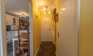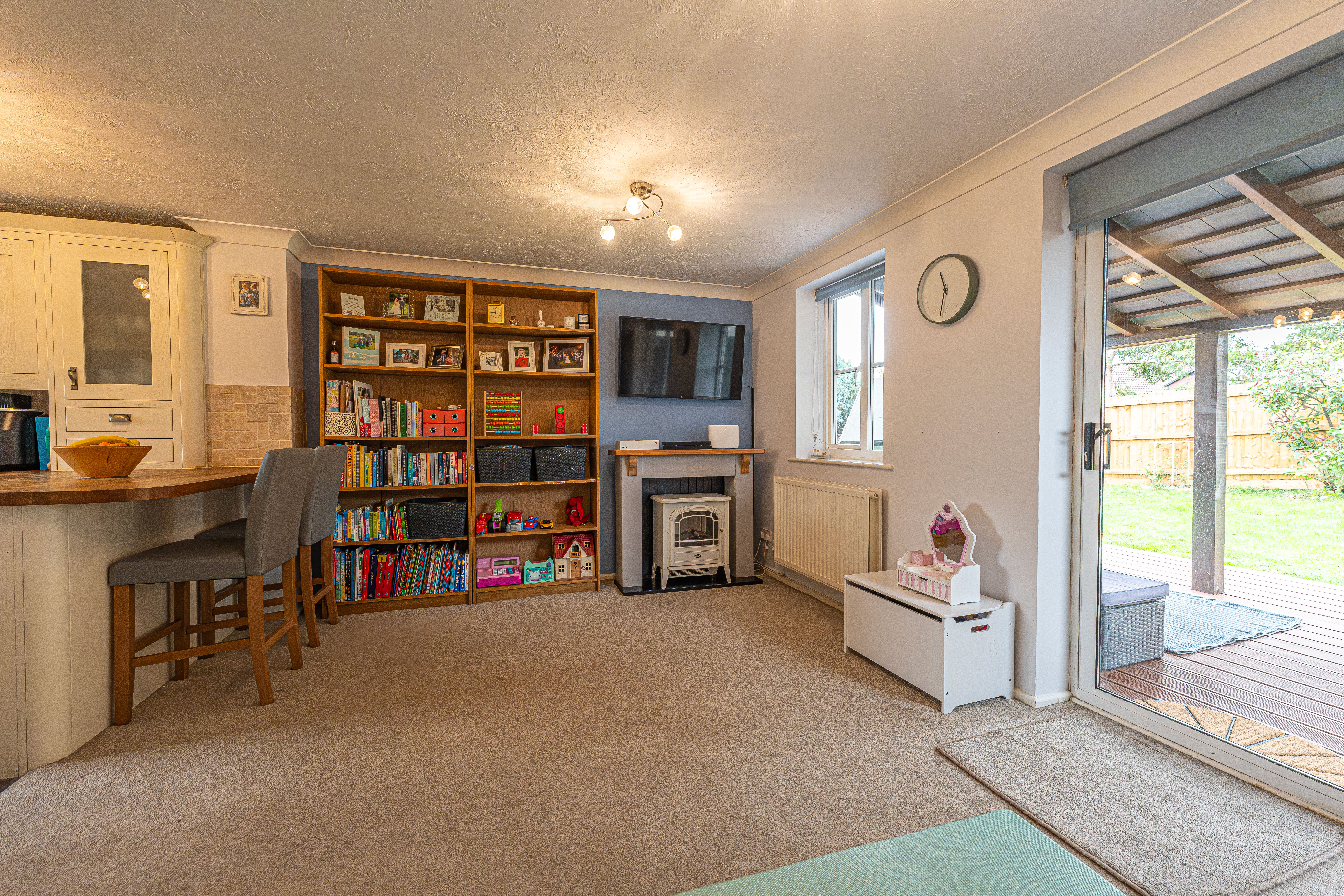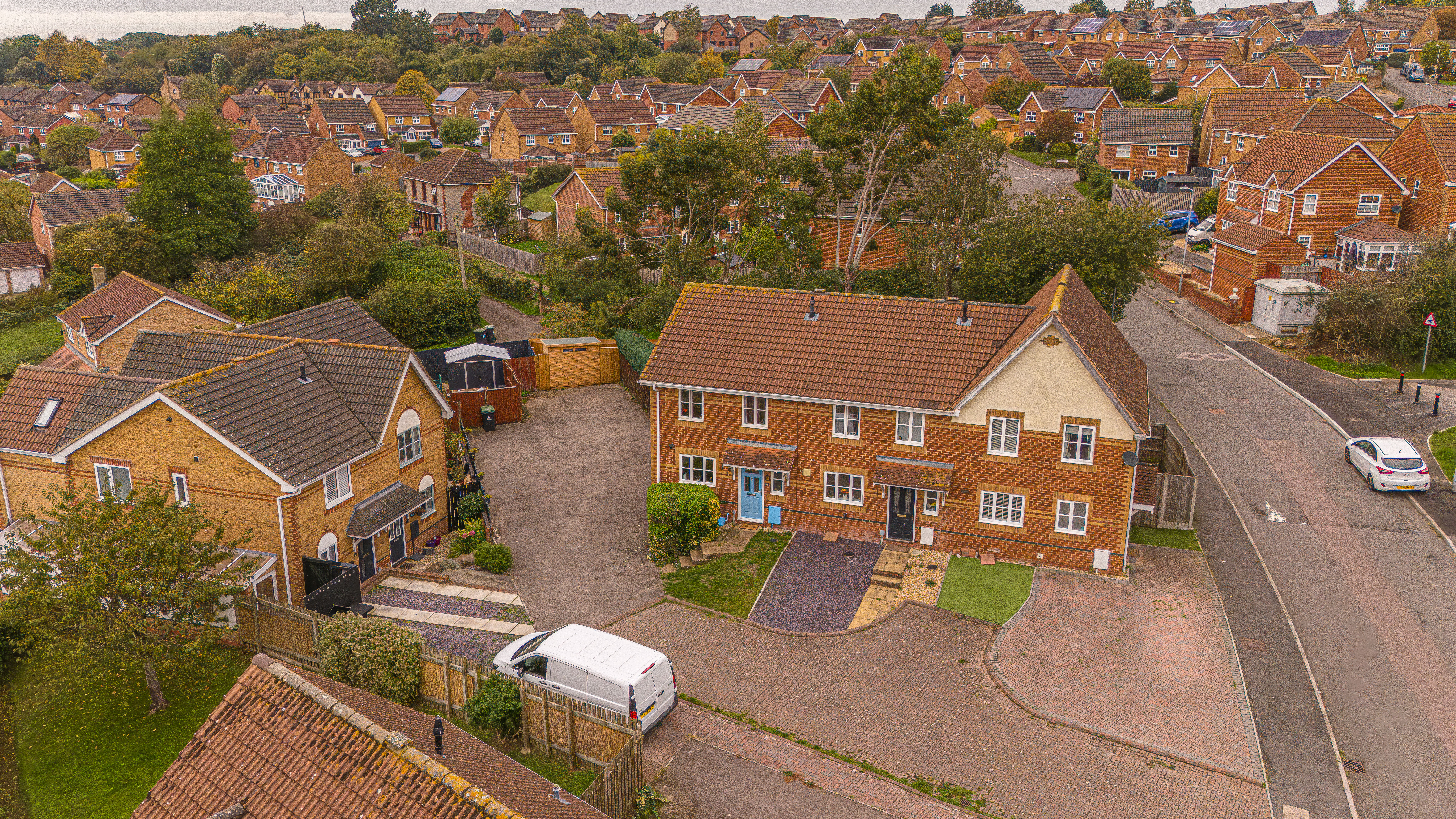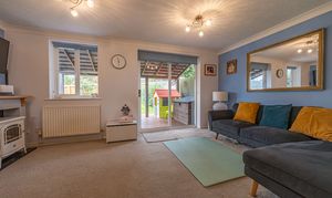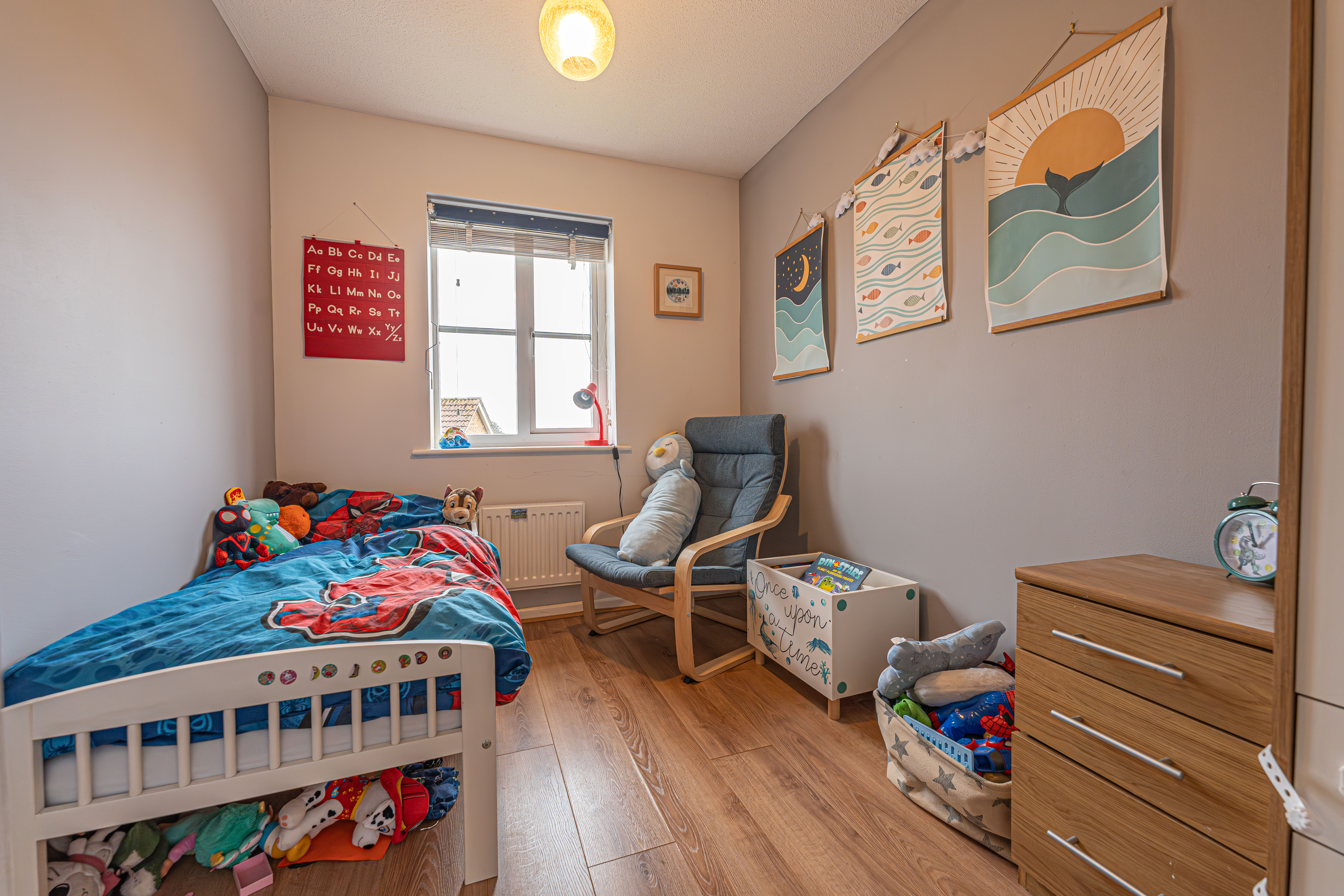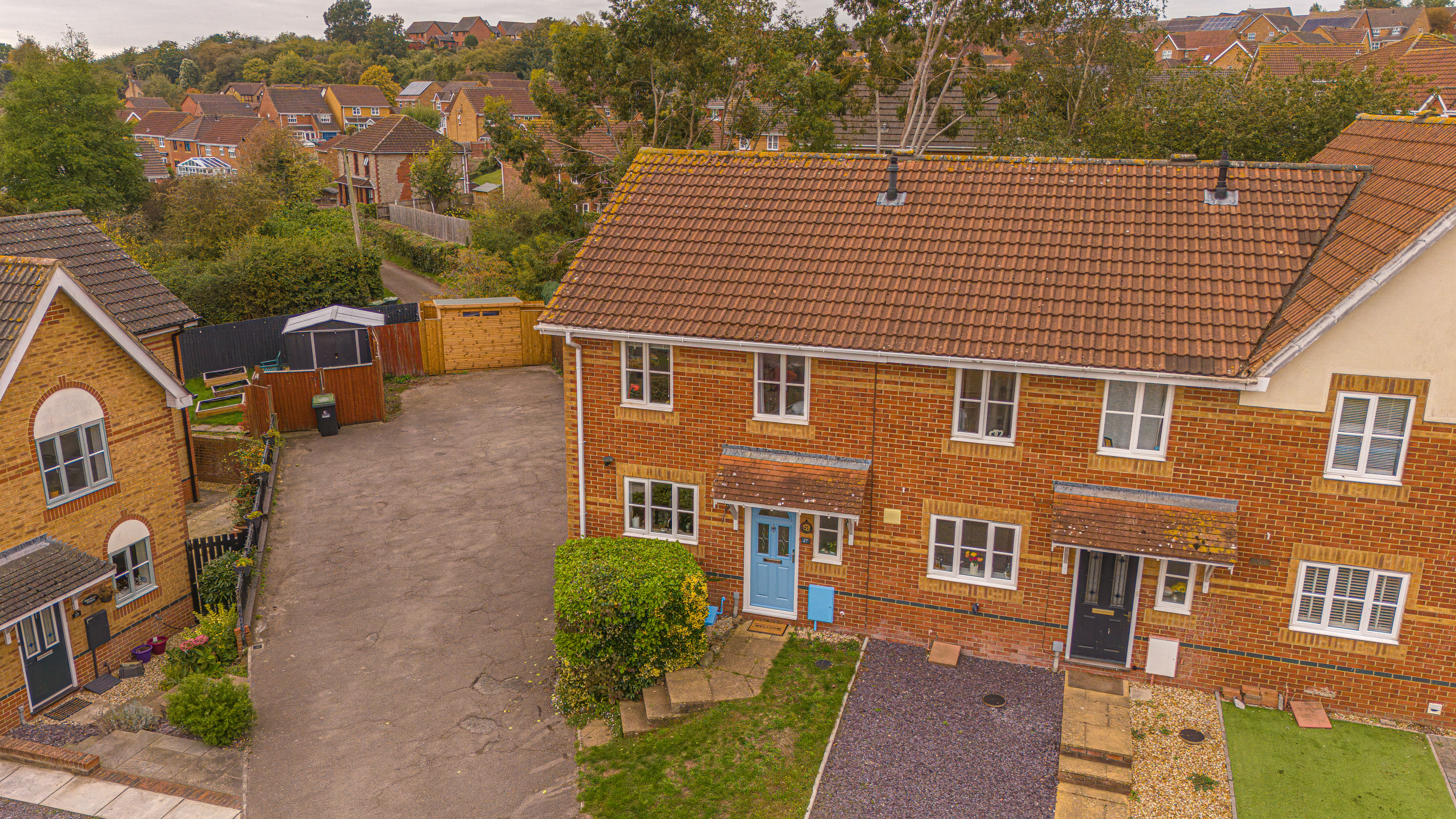 Stepping outside we have the fully enclosed rear garden, which sits on a generous corner plot, with plenty of space for unwinding and welcoming visiting friend and family. The garden mainly consists of a sizeable grass lawn, while from the house we can find a marvellous sheltered veranda which has been has been extended by the current vendors, showcasing a great space for lounging and al-fresco dining. The property also benefits from a newly constructed shed and a Wendy house for convenient storage, while a gateway from the garden connects to a shared driveway area, with allocated space for 2-3 vehicles to be parked off-road.