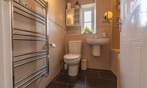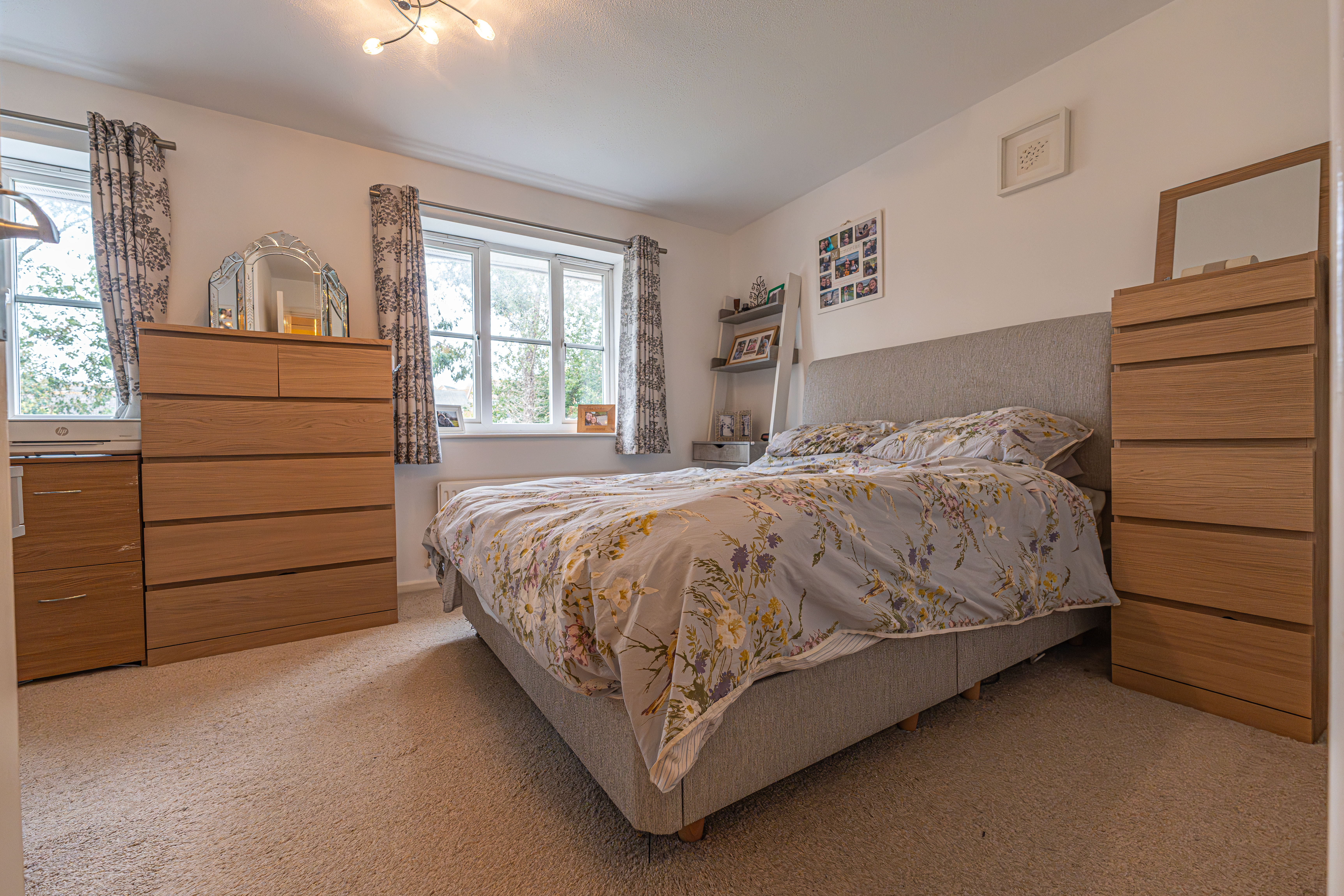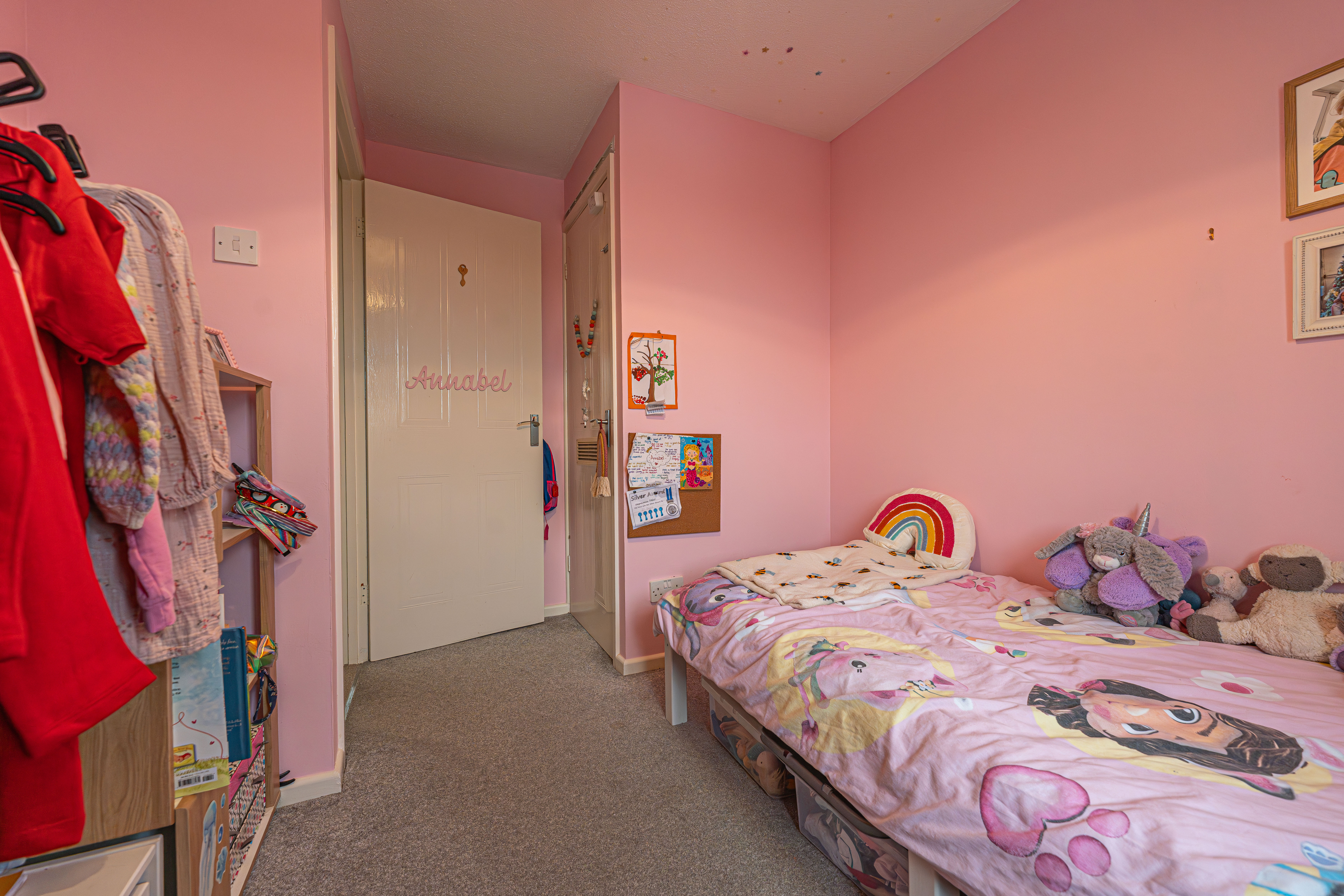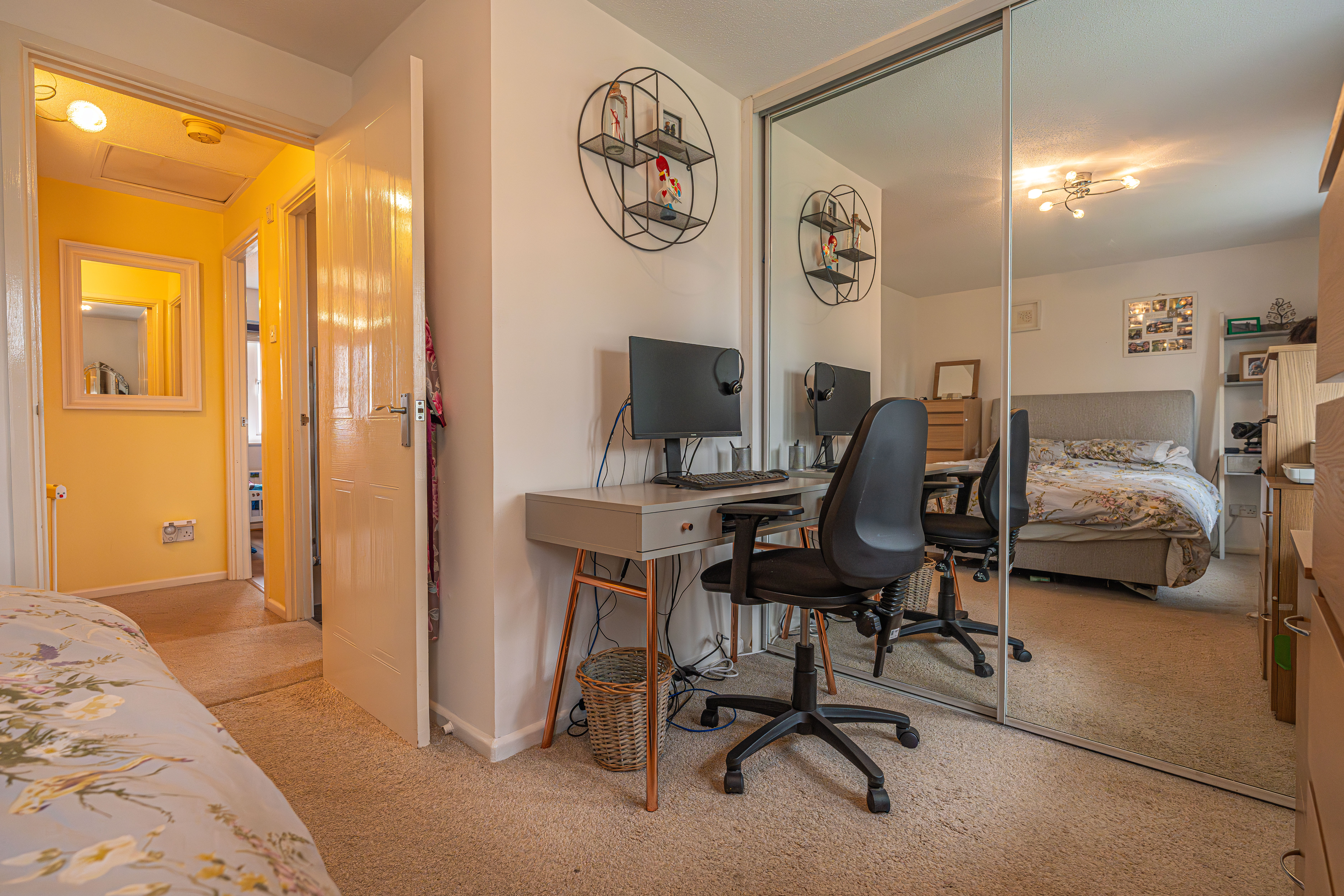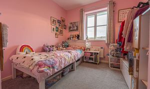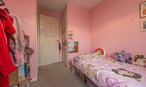 Ascending to the first floor we have the three bedrooms, two of which are doubles which enjoy fitted wardrobes for added convenience, while the third is a modest single, and is well suited for alternative staging of a home office, dressing room or nursery. The family bathroom is accessible from the hallway with a bath suite and overhead shower.