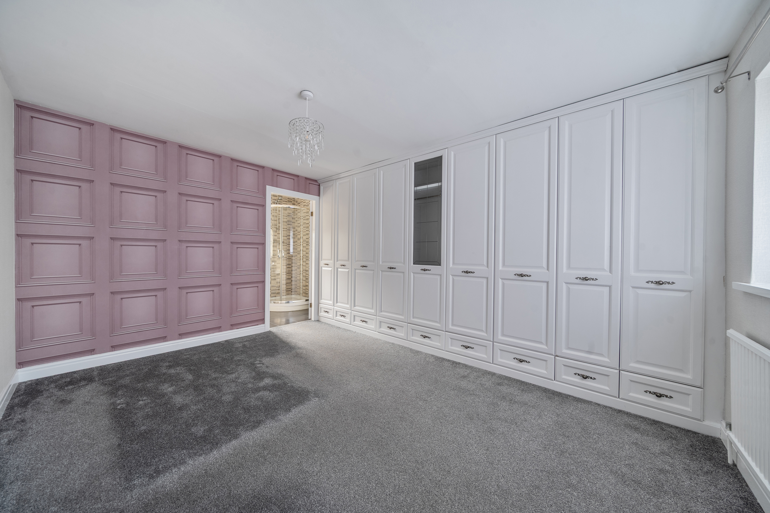 To the first floor, the landing leads to a principal bedroom with fitted wardrobes and en-suite shower room, three further bedrooms, and a modern house bathroom featuring a separate walk-in shower.