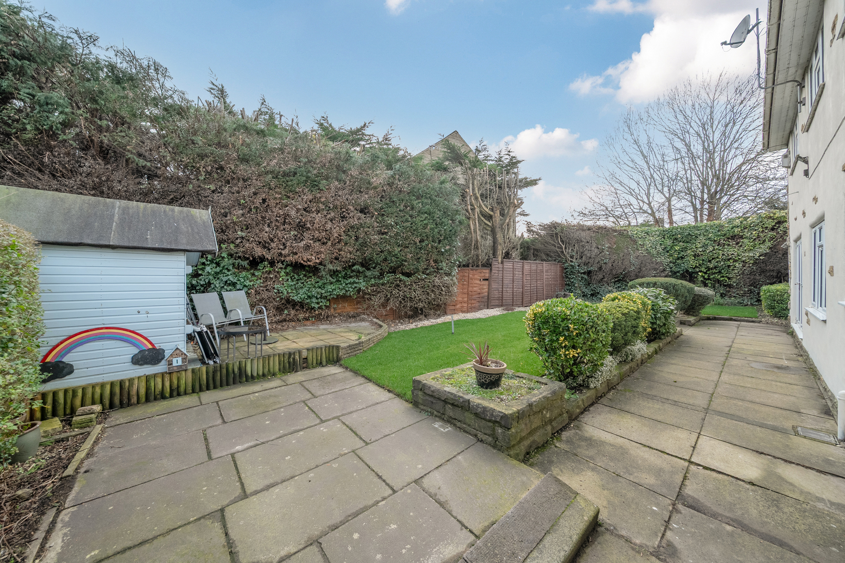 An attractive stone built 4/5 bedroom detached house built in the 1970’s with a good sized side conservatory addition, spacious breakfast kitchen and 2 modern bathrooms, a 17’9 × 15’1 garage standing in private mature lawned gardens in the corner of this sought after cul-de-sac in the village of Pool in Wharfedale located between Leeds & Harrogate.