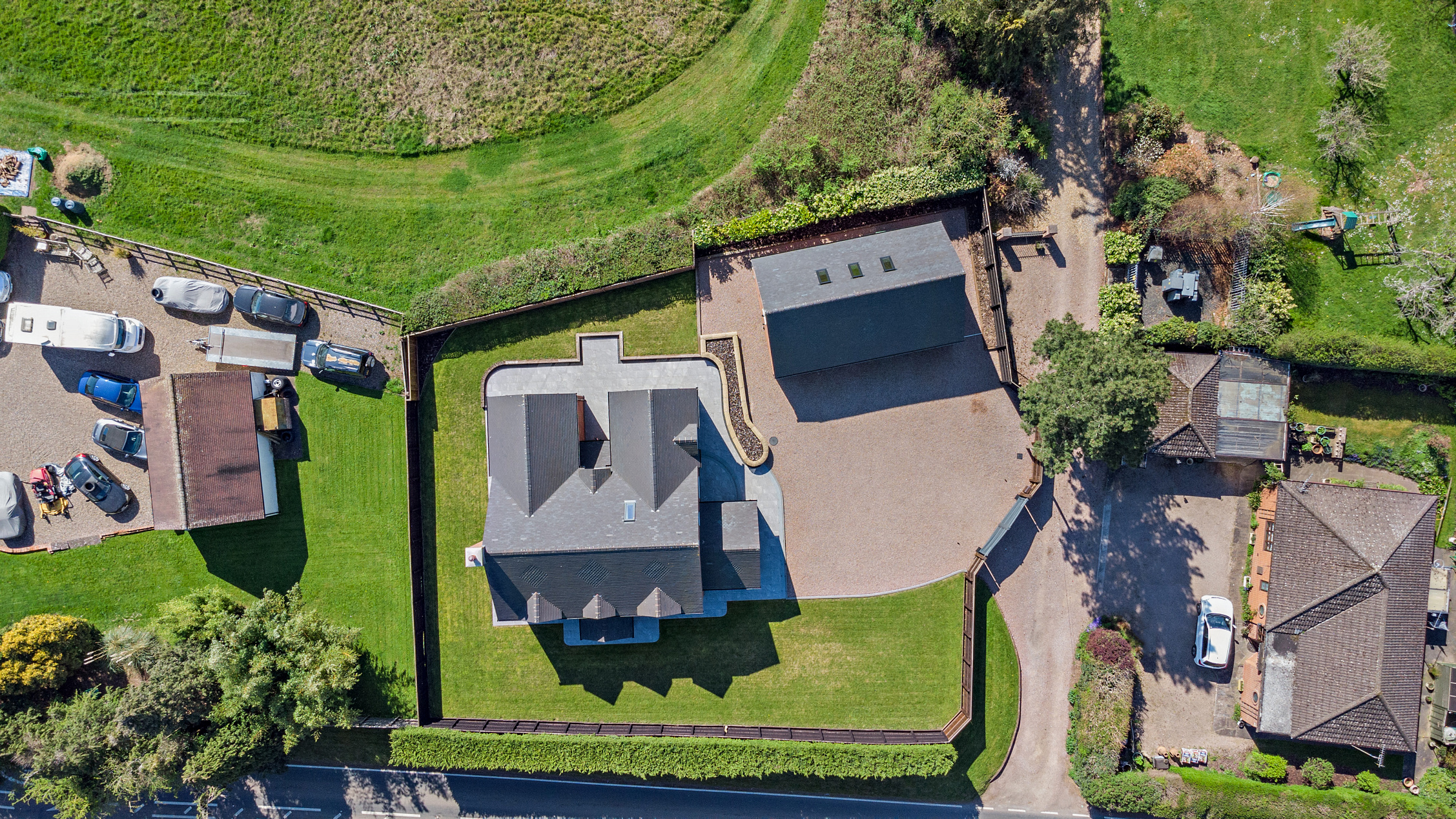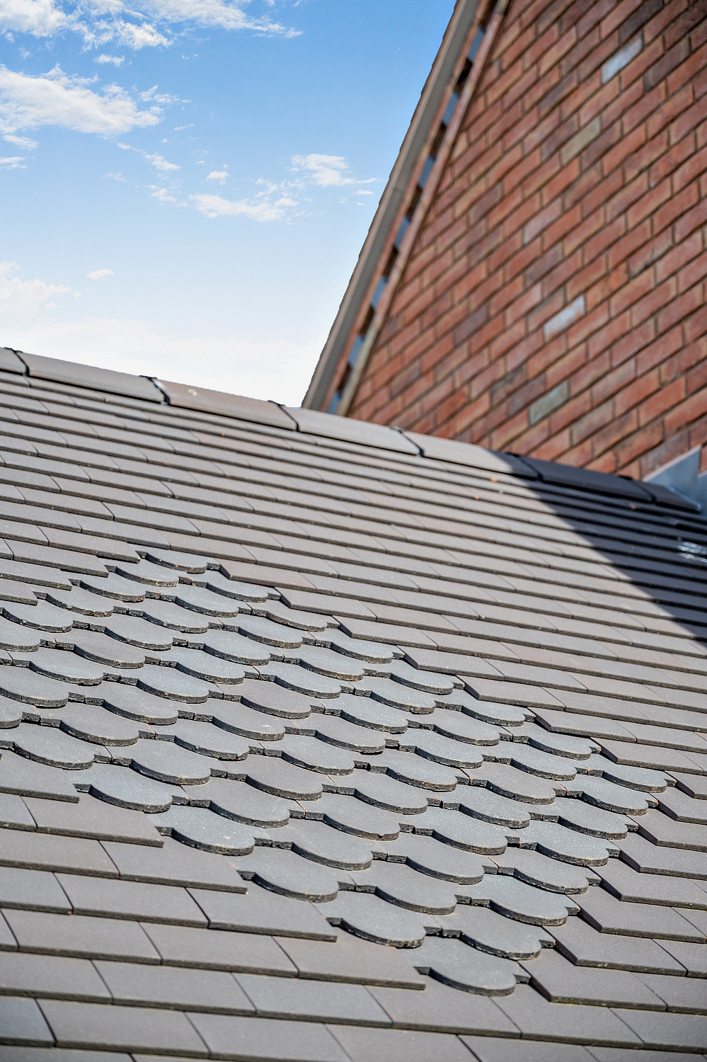 From first arrival, it’s clear this is a house built with care. Electric gates open to a private drive and a confident exterior, where the roofline and intricate roof detailing set the architectural tone, including a distinctive diamond‑pattern tile layout that speaks to the attention given to every finish.