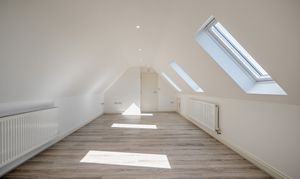 A particular highlight is the large detached double garage, designed well beyond simple parking. The open layout provides excellent space for two cars, alongside a separate side access door into an area already plumbed and electrically prepared for the future installation of a kitchenette. A utilities cupboard and a ground-floor shower room further support the space, making it ideal for those seeking flexibility for working from home, multi‑generational living, or a studio‑style setup. A staircase leads to the upper floor, where a substantial, light‑filled room, finished with laminate flooring and served by an additional WC, offers superb versatility. Whether used as a professional workspace, hobby studio, or private retreat, it provides that increasingly rare extra dimension: space that adapts as life changes.