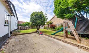 Outside, to the rear, the garden is a very good size, fully enclosed by fencing and offering a lovely space to sit and enjoy the warmer weather. It is laid mainly to lawn with paved patio areas providing lots of space for garden furniture, cooking meals on the BBQ and entertaining visitors. There are lovely borders of plants and shrubs, mature trees dotted through the lawn, access to a summer house, and scope for new owners to put their own touches on things.
