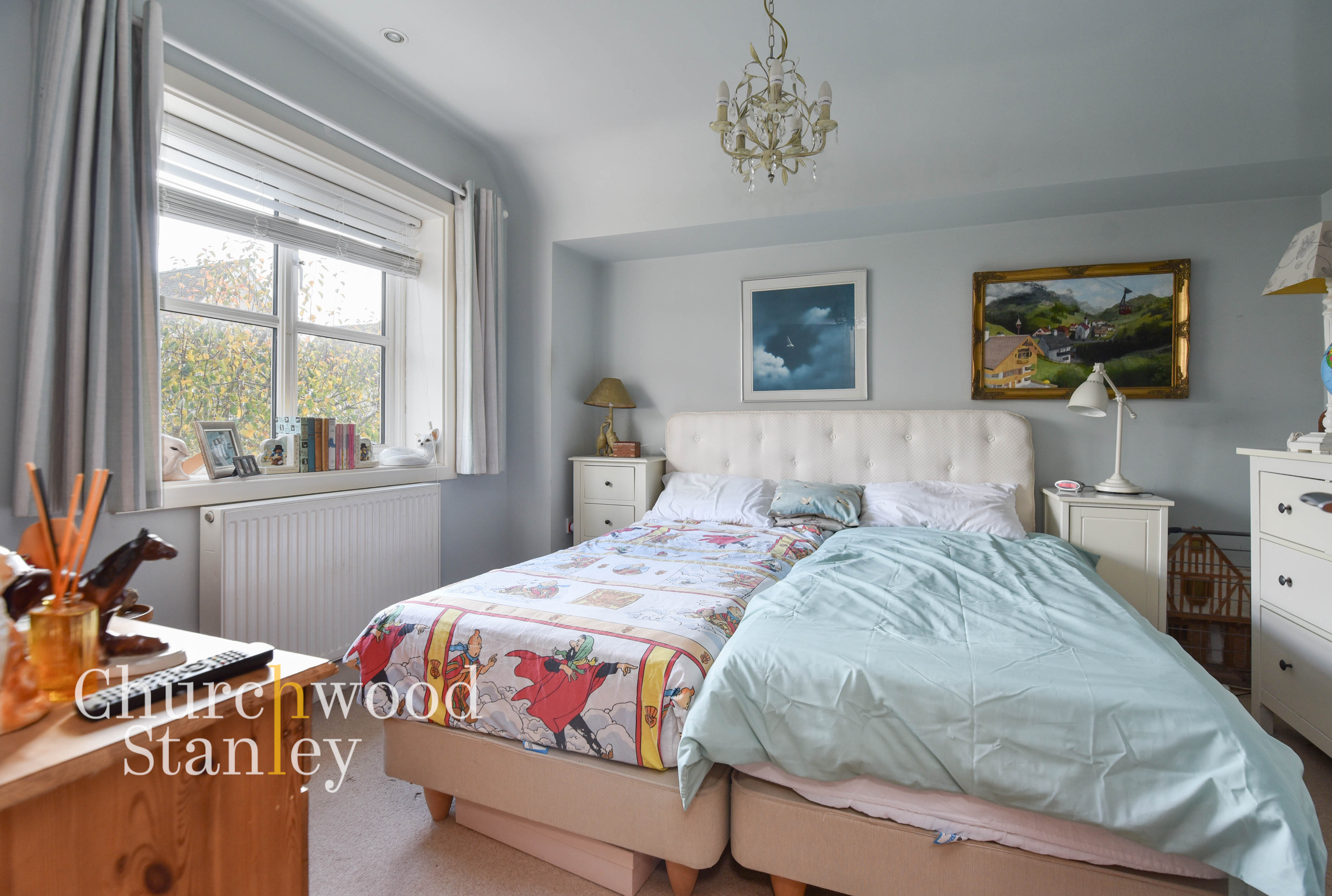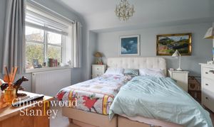 The second bedroom overlooks the rear garden, a bright, balanced double room that feels peaceful and private. The third double bedroom enjoys dual windows for natural light from two sides, offering great flexibility as a guest room, study or creative space.