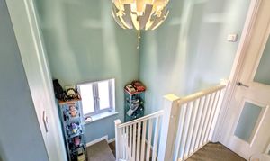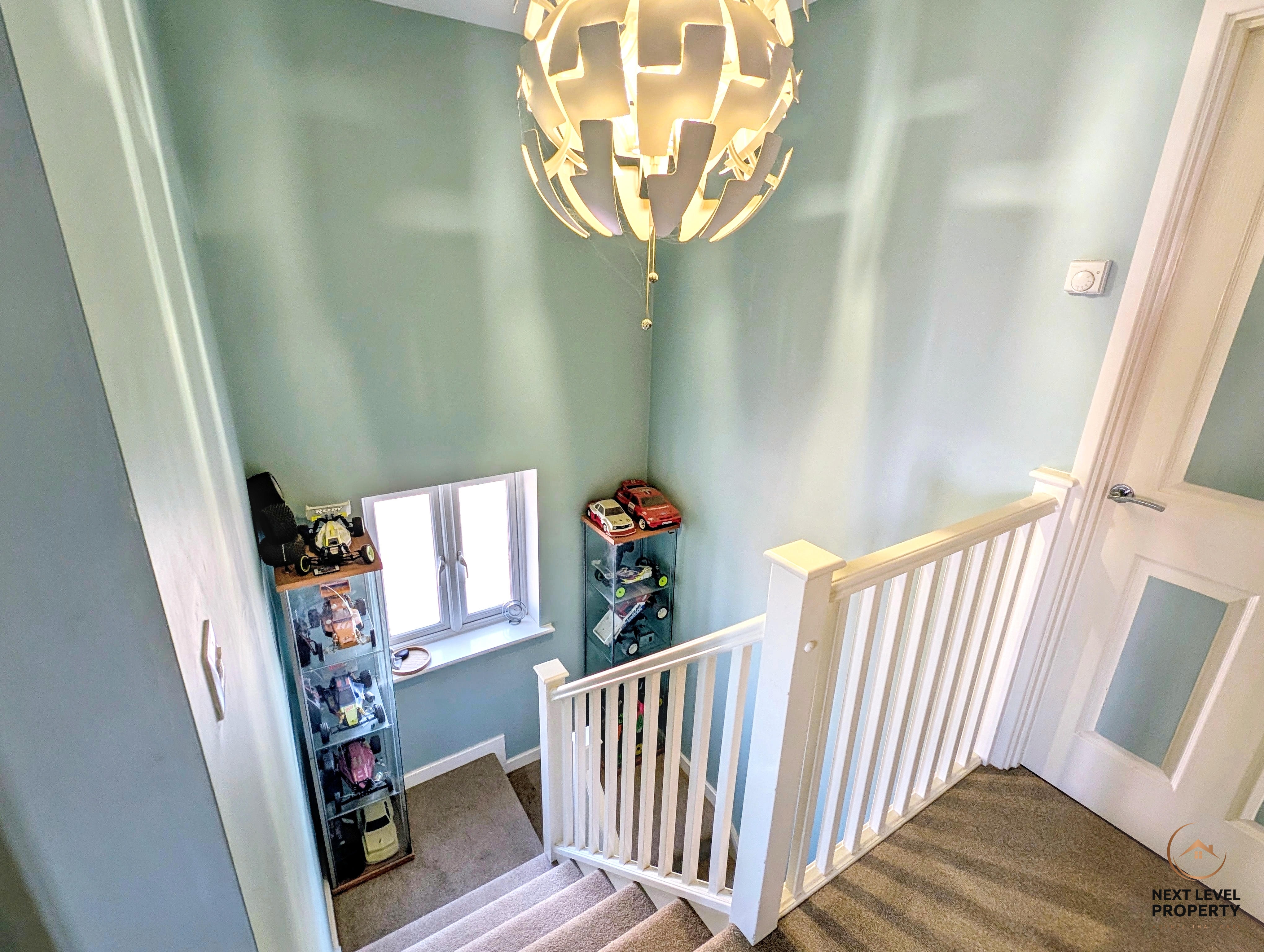 Upstairs, the landing provides access to four bedrooms and the main family bathroom. The family bathroom is well proportioned and includes a bath with overhead shower, WC, wash basin and heated towel rail.