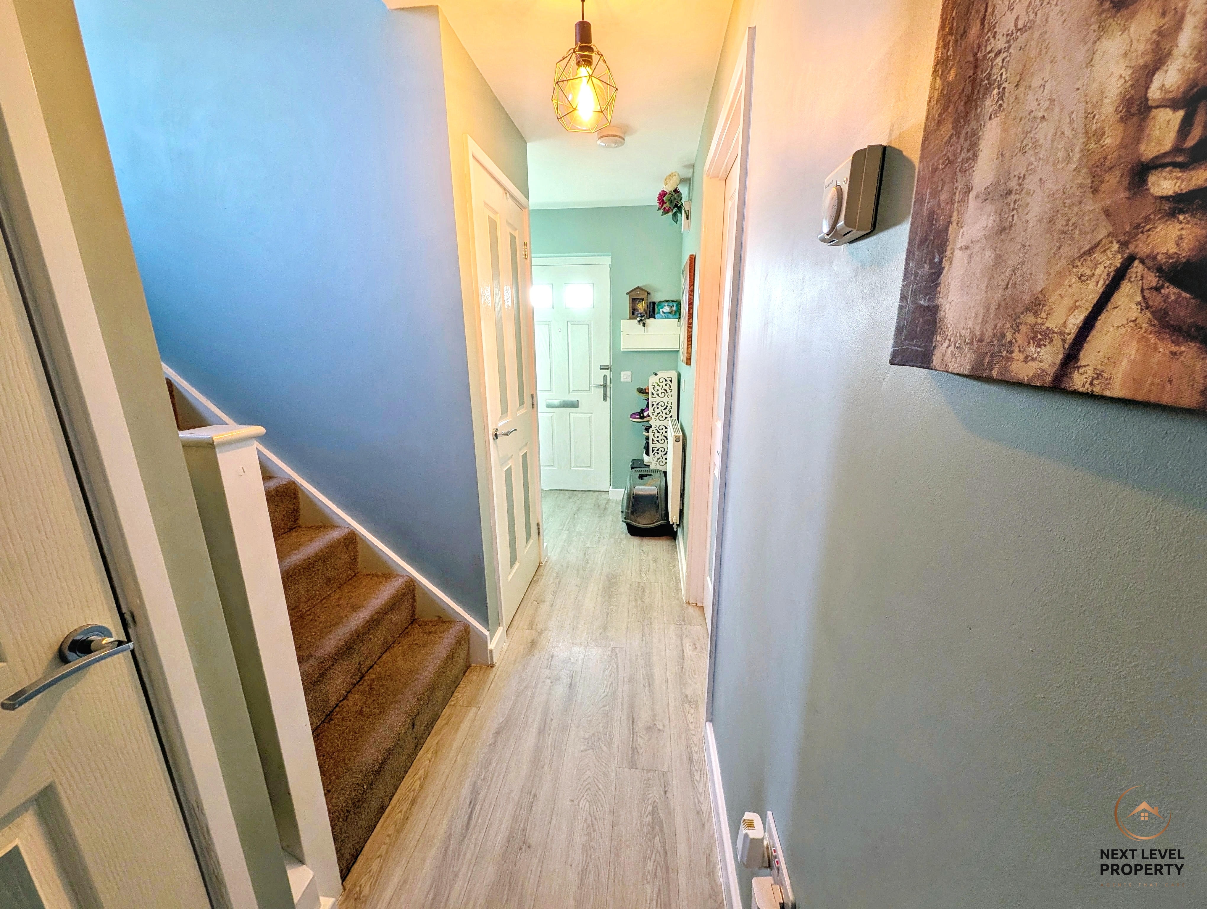 Leading through the welcoming hallway is the generously sized lounge, tastefully decorated and filled with natural light. With two radiators and large double patio doors opening onto the enclosed rear garden, this is a comfortable and inviting living space.