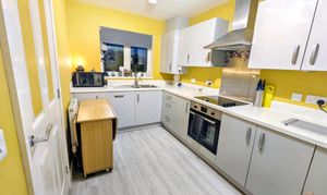 The property features a modern and spacious kitchen, fitted with a built-in washer/dryer, fridge/freezer, oven, hob and dishwasher, offering both style and practicality.