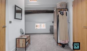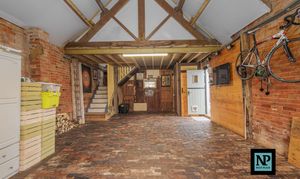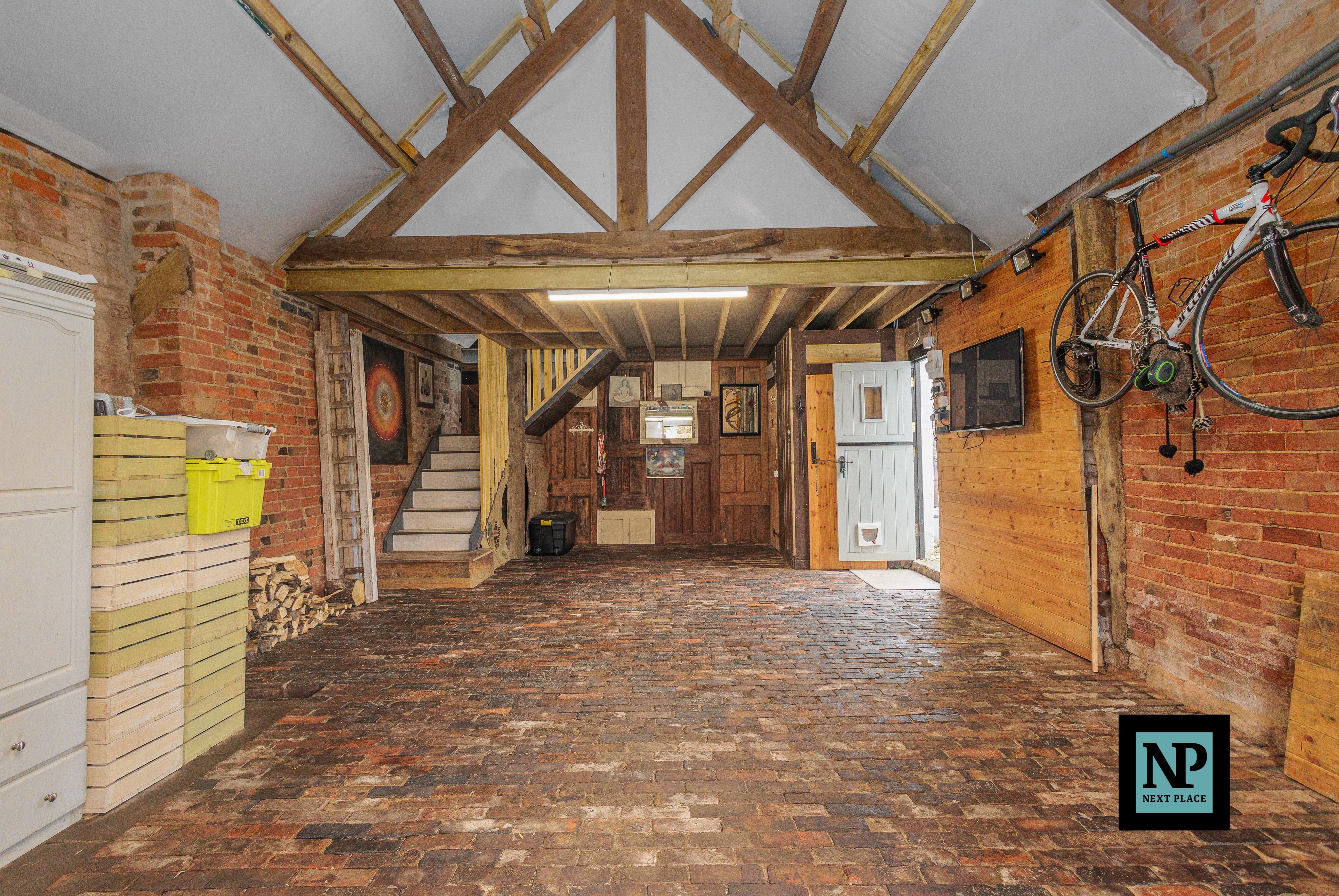 Externally, the property continues to impress with a substantial Barn / double garage, offering excellent versatility and providing secure parking or the potential for workshop or hobby space. The garage also benefits from a mezzanine storage level above, creating valuable additional space.