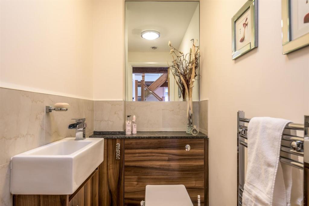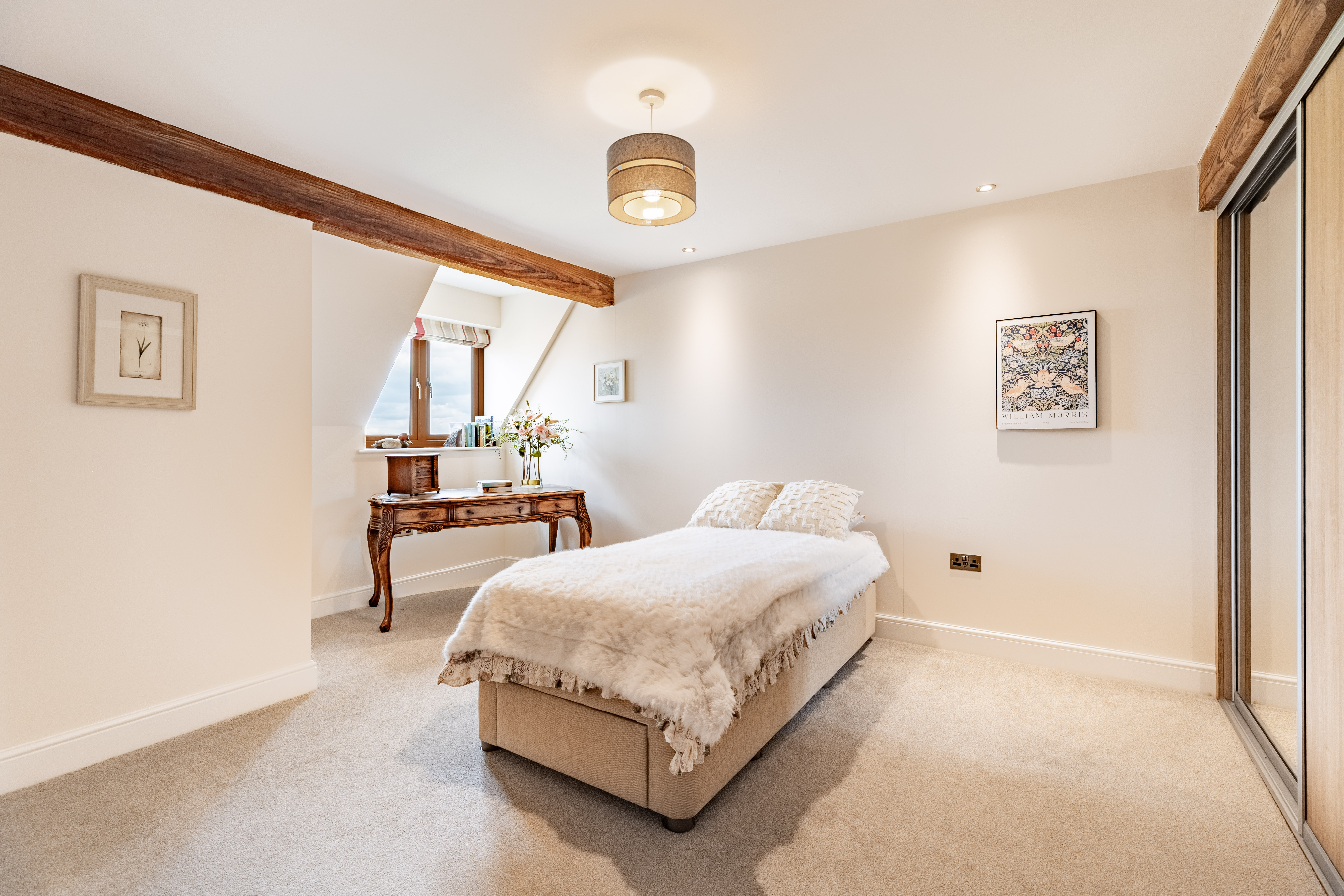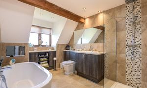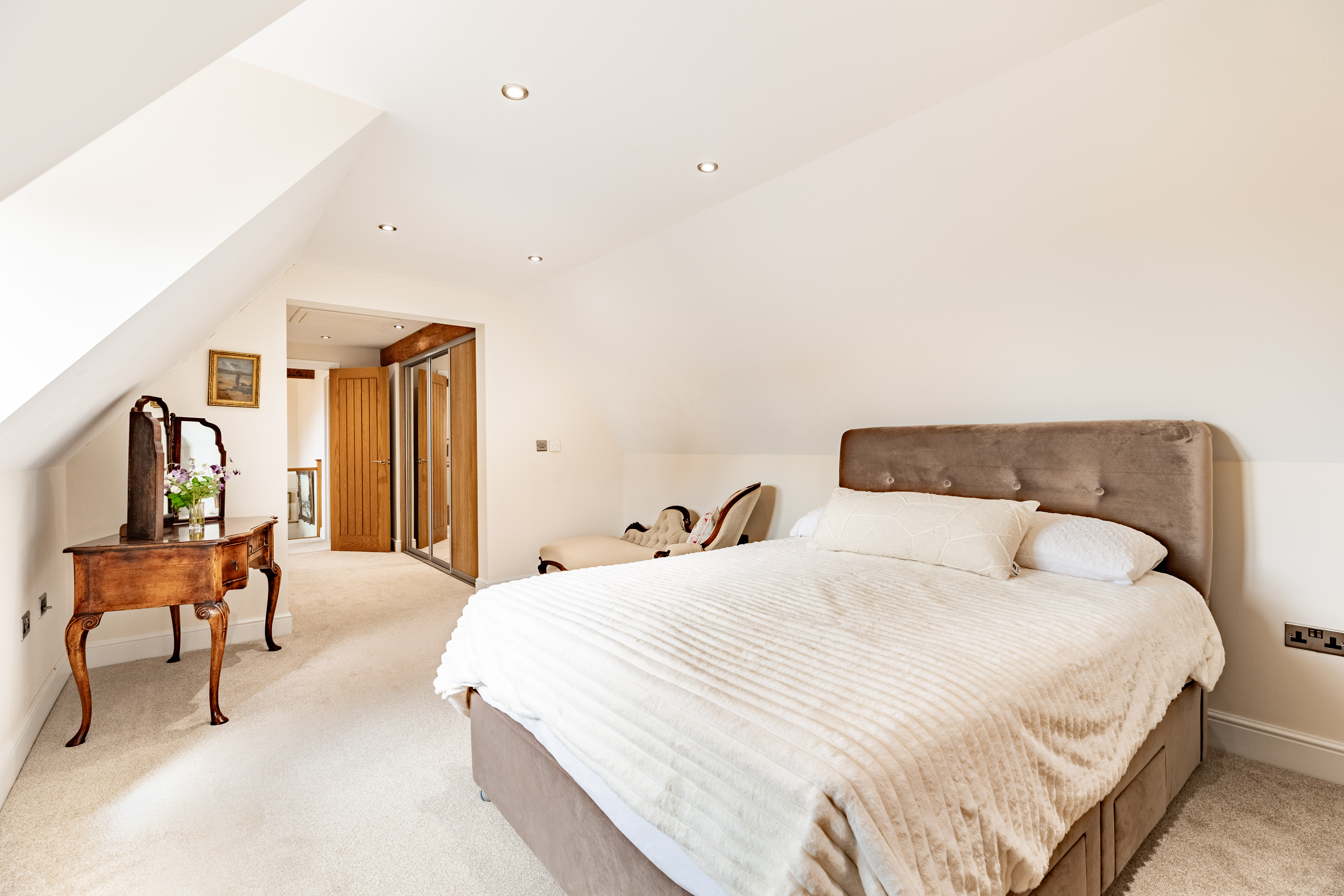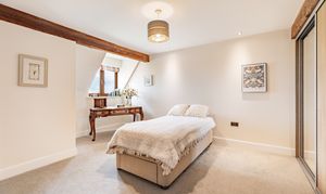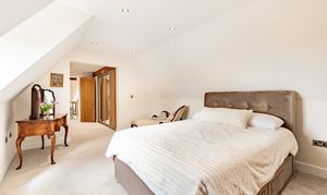 The second bedroom is also an en suite room and has a dressing area. This room is self-contained, and, as there are views of the fields at the rear, you may decide that you want to use this room as the master suite. Alternatively, it would make a fabulous teenagers' room - that way, no one has to queue for the bathroom as they inevitably spend hours and hours in there! Or a guest room, which would give your guests a little personal space. Although we can't promise that they'd ever leave such a wonderful home.