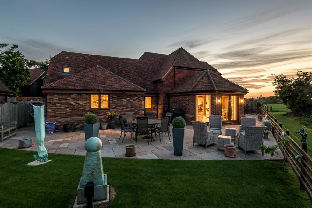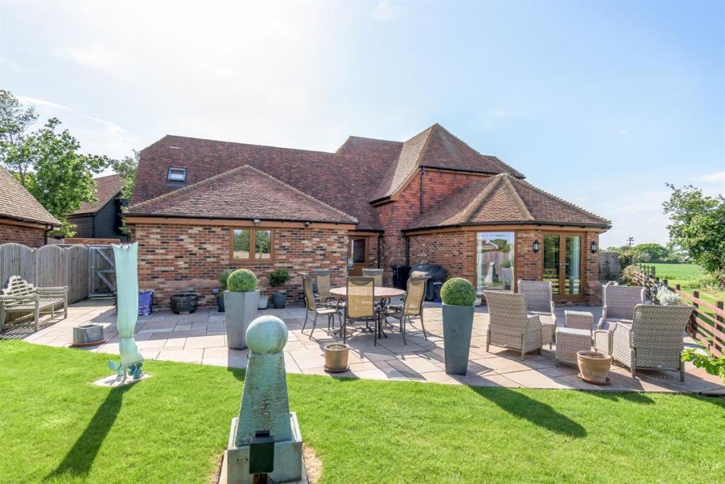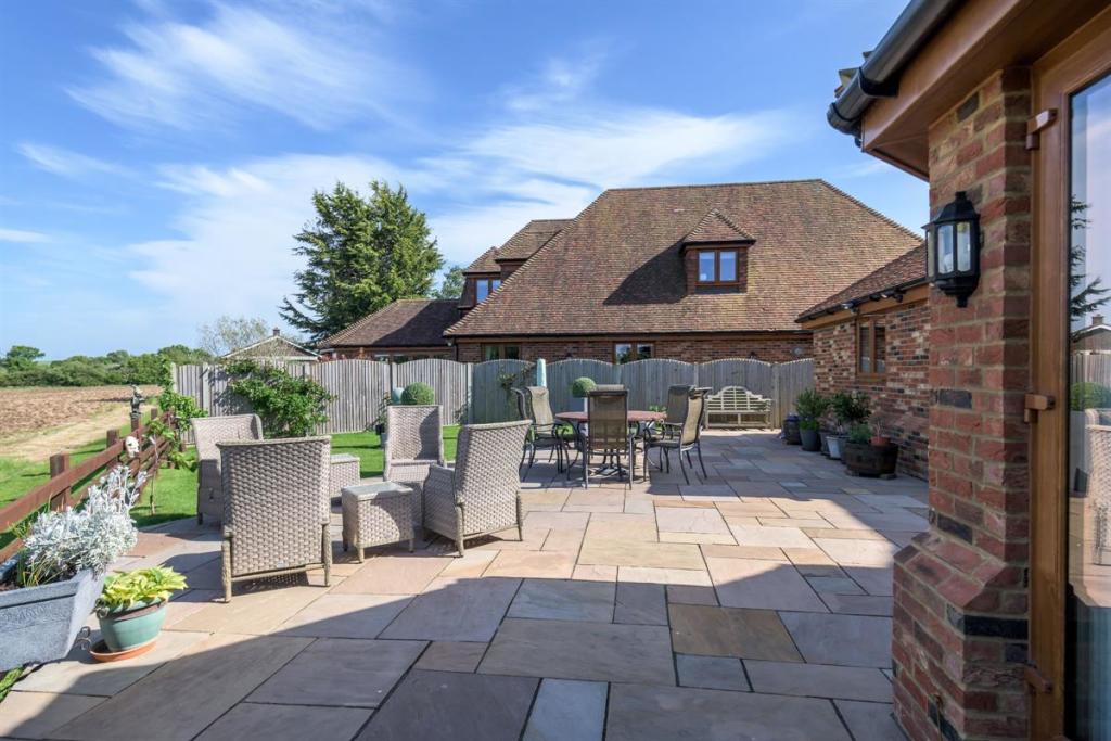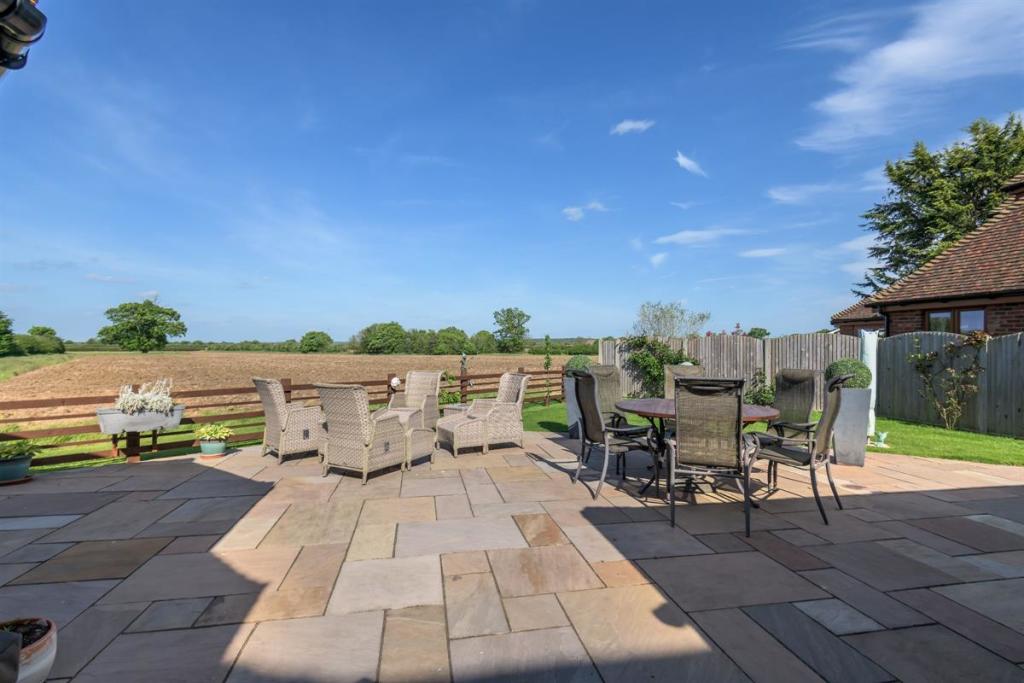 Wildlife enthusiasts and bird watchers alike will love to spend a summer evening in this garden spotting the myriad of animals and birds that frequent the fields behind. The garden wraps around the rear with a fenced boundary so that the fields and wildlife are in sight. A large patio area allows plenty of seating for entertaining with summer garden parties and family BBQs, or even just enjoying a well-deserved G&T at the end of a long and busy day.